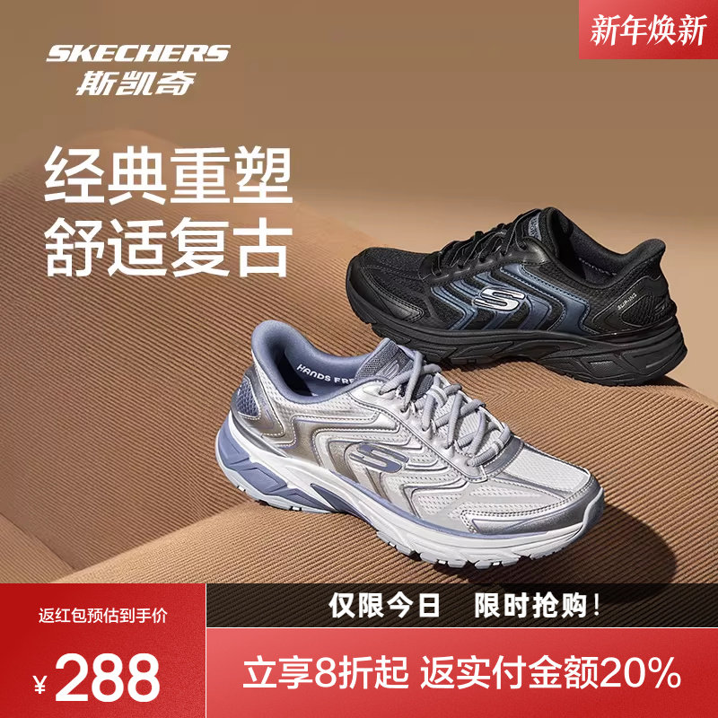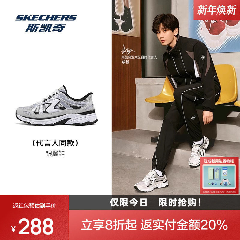 斯凯奇银翼鞋2025新运动老爹鞋复古跑鞋轻便透气耐磨减震闪穿鞋