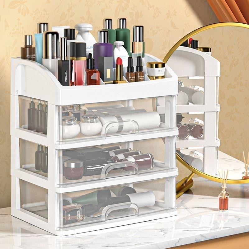 化妆品收纳盒桌面透明抽屉式塑料整理盒化妆盒带抽屉多层大容量