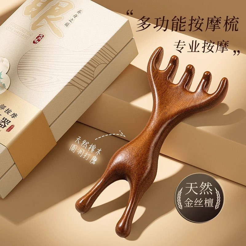 五爪鹿角按摩梳子头部头皮经络头疗养生小青蛙檀木疏通刮鼻梁神器