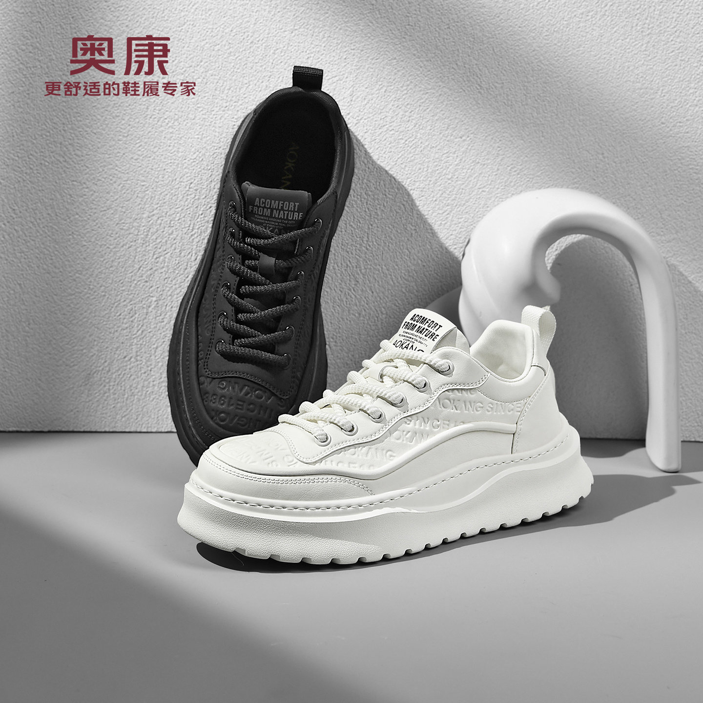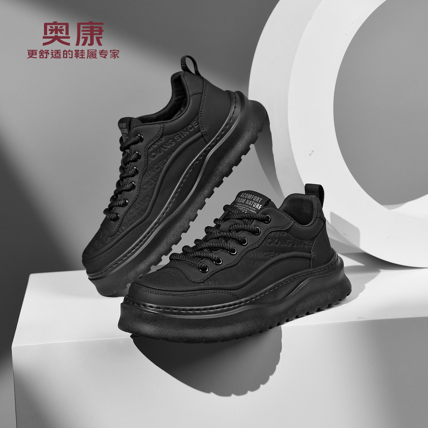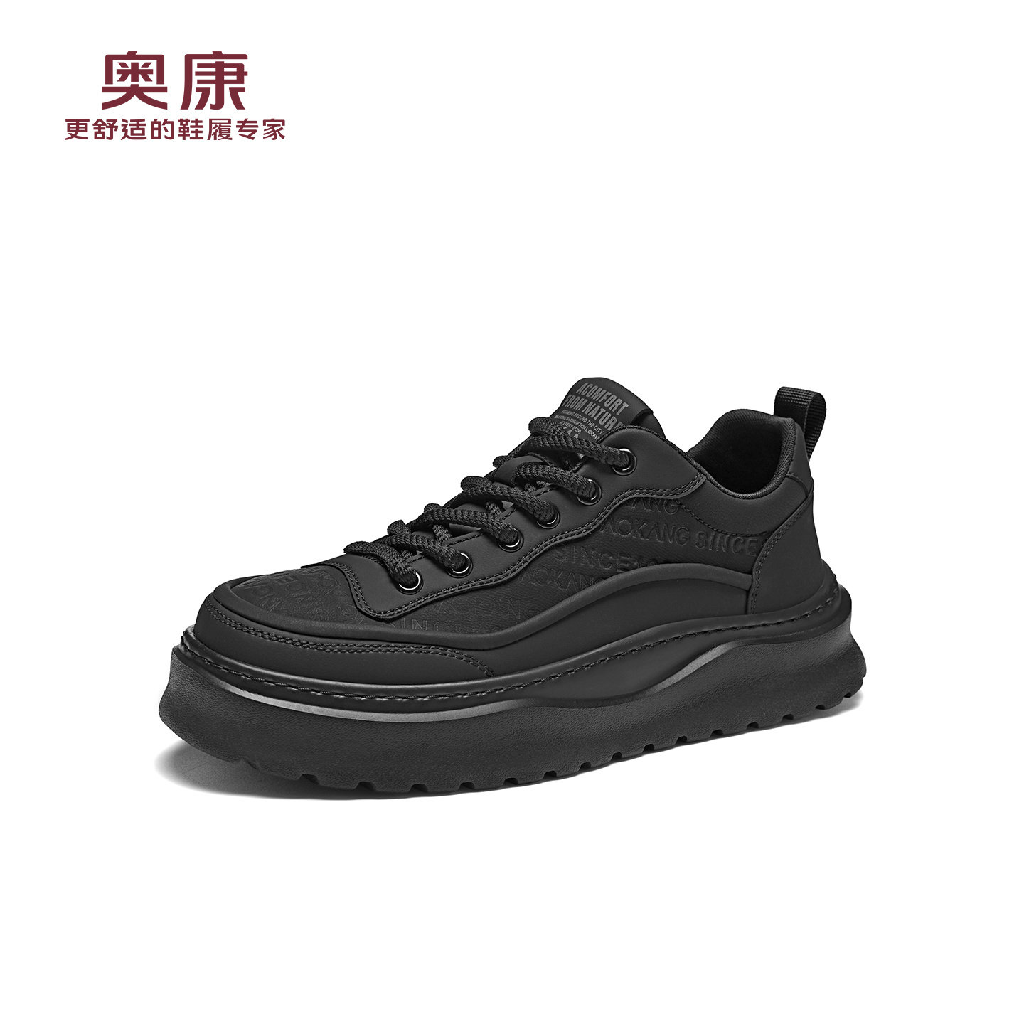 奥康 男鞋2025秋季运动板鞋男百搭黑色轻奢厚底增高休闲男士皮鞋W
