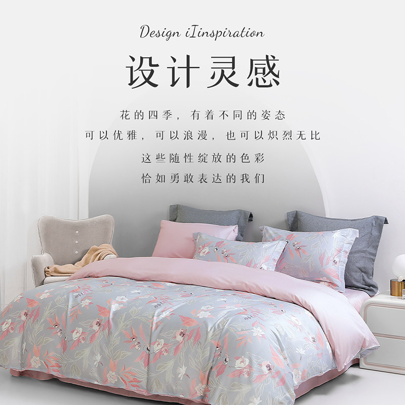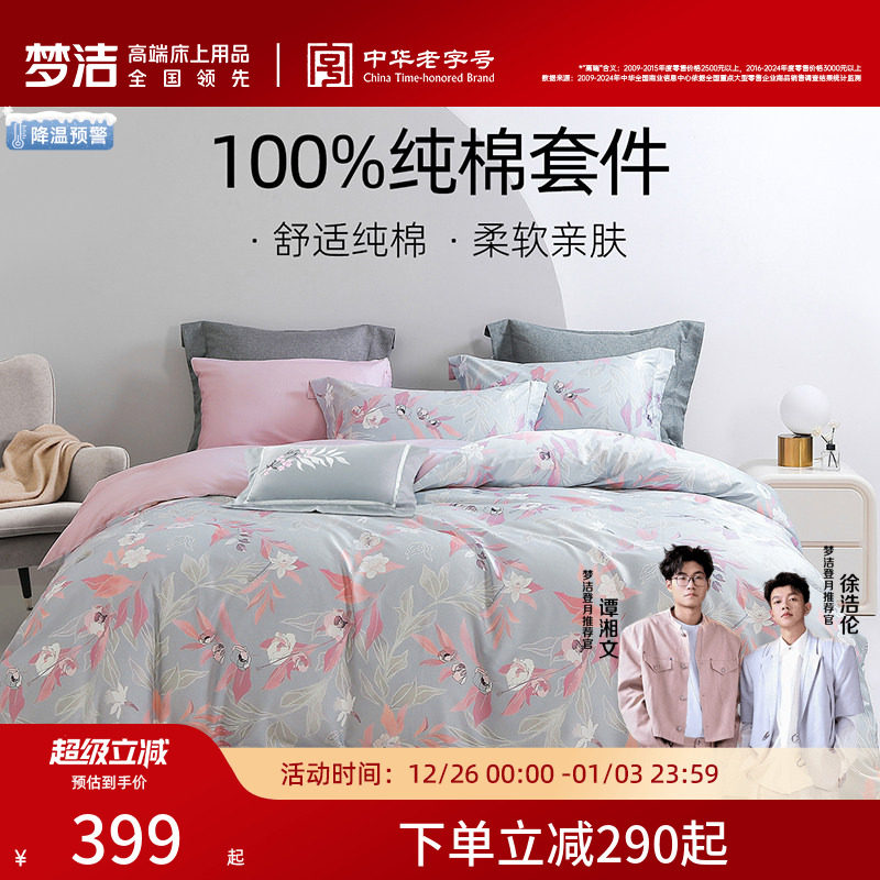 梦洁家纺60S贡缎纯棉床上四件套纯棉全棉套件被套床上用品
