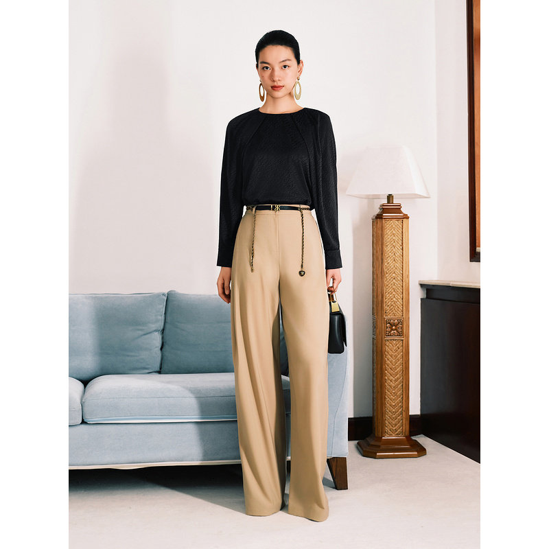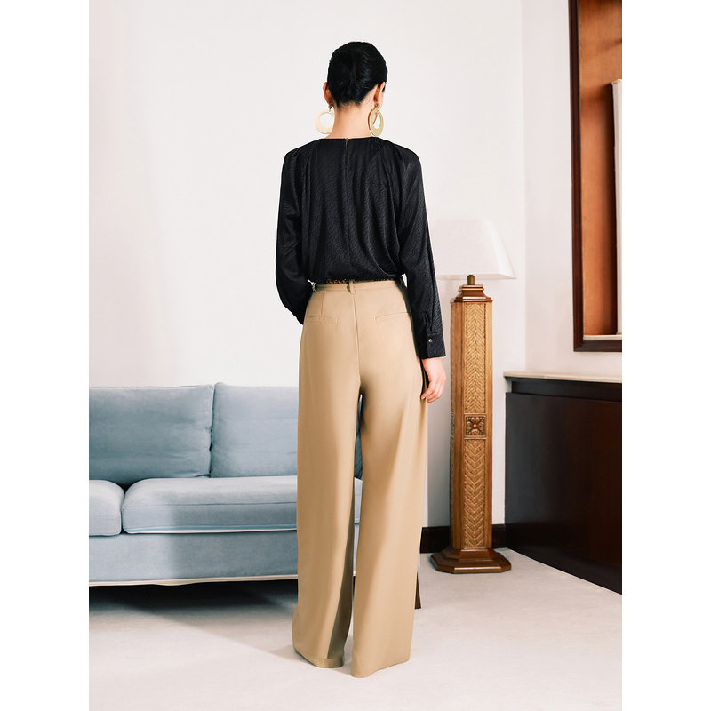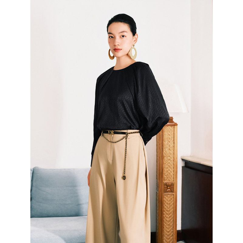 【真丝系列】YINER音儿秋季弹力桑蚕丝提花褶艺衬衫上衣