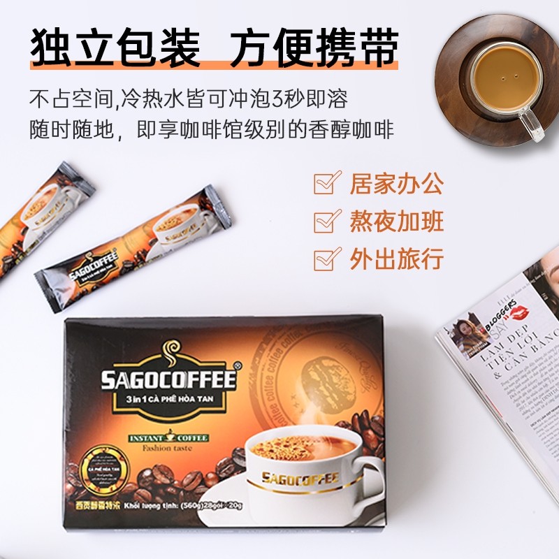 越南进口西贡速溶醇香特浓咖啡28条盒装三合一咖啡粉熬夜提神冲饮