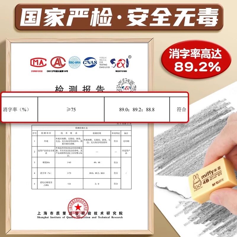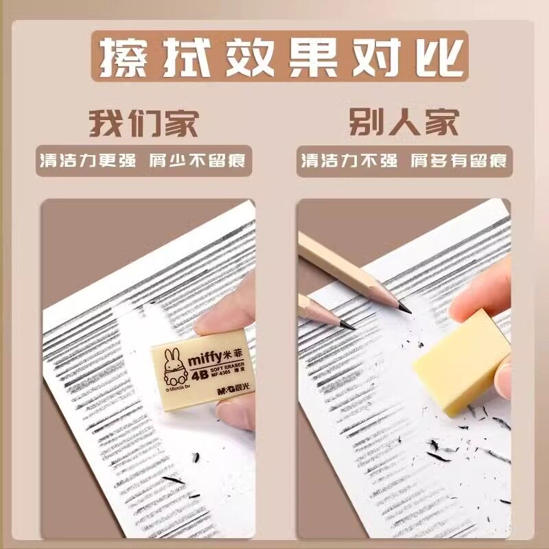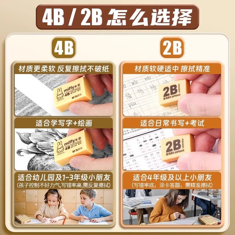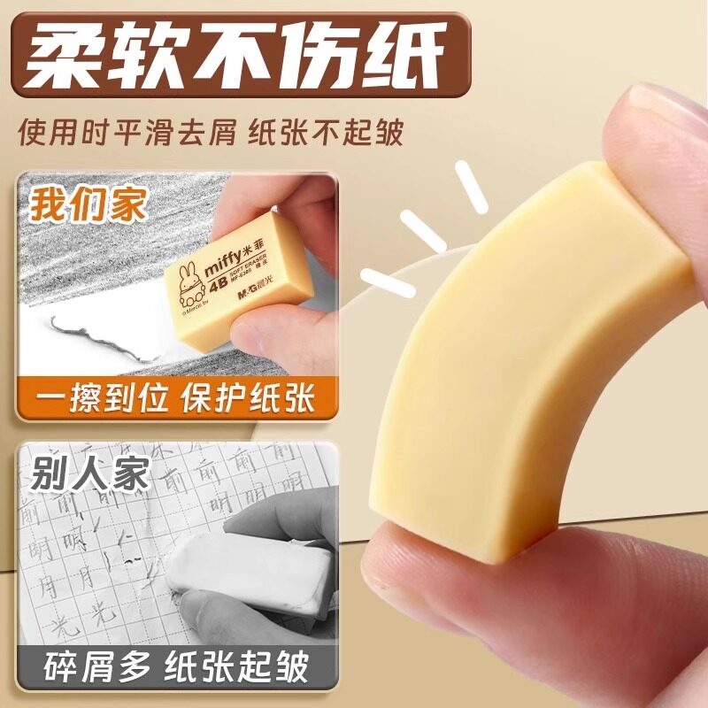 晨光4b橡皮擦小学生专用无屑不留痕擦的干净幼儿园美术2B像皮檫绘图考试无毒一年级擦字铅笔象皮素描文具用品