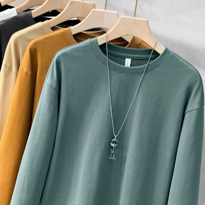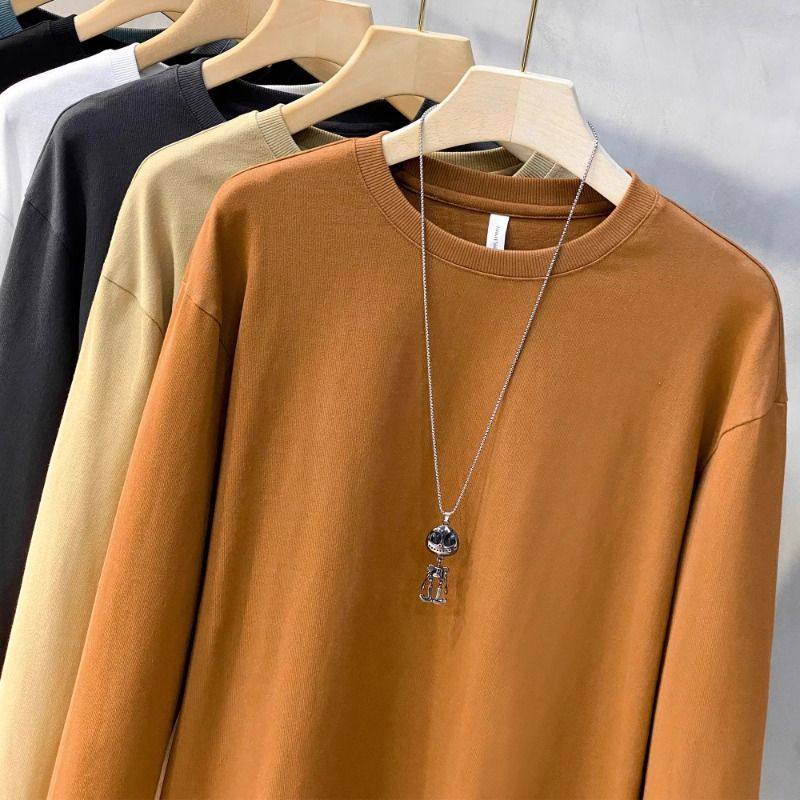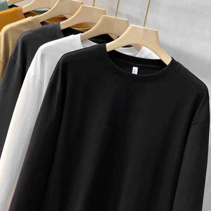 INS纯棉25韩国ins复古基础款纯色秋季打底衫内搭男女长袖T恤bf风