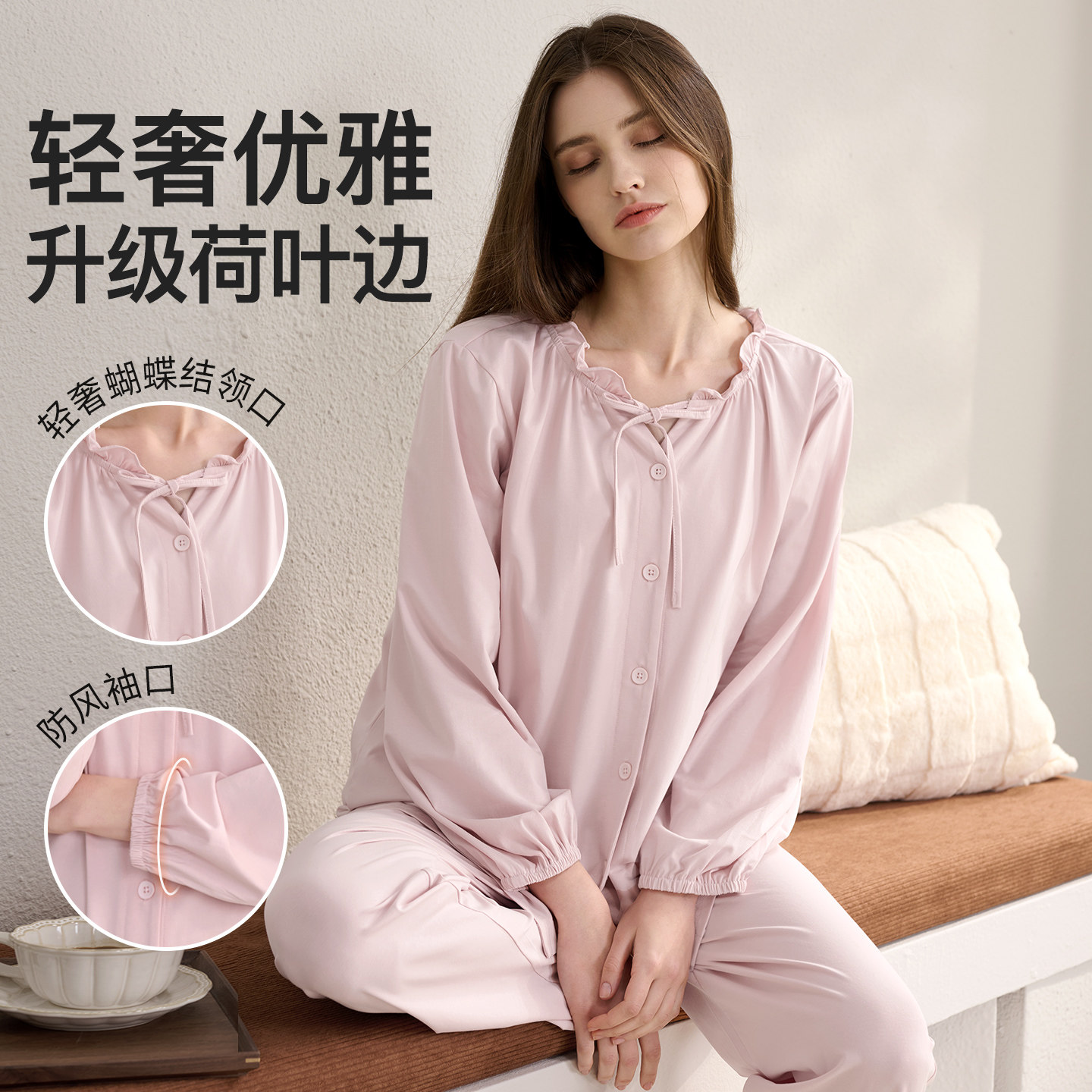 婧麒云慕丝月子服产后秋冬季纯哺乳家居服棉怀孕产妇孕妇睡衣套装
