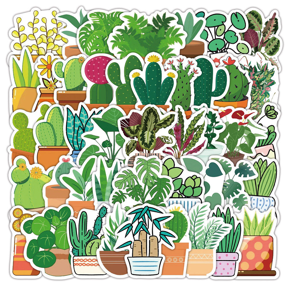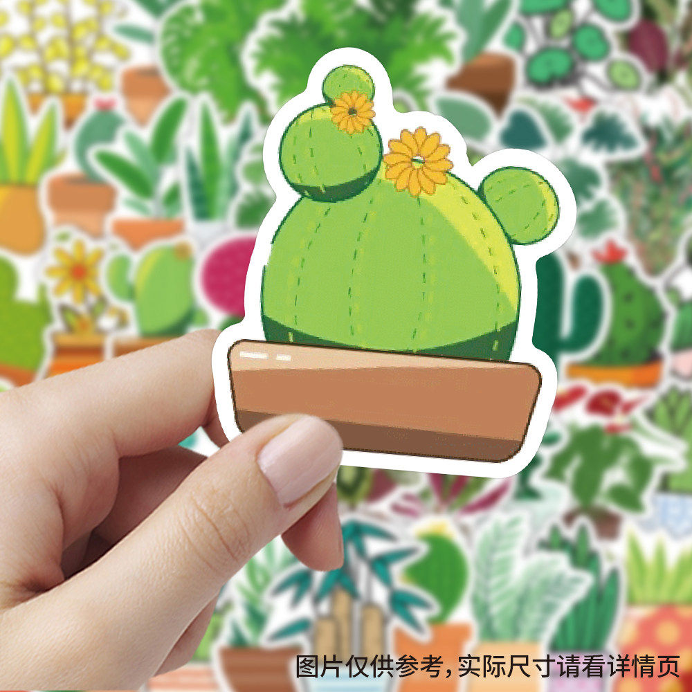 【大图释官方授权】120张盆栽绿植贴纸卡通可爱创意装饰手账本桌面手机壳防水贴画diy玻璃窗花装饰不干胶素材