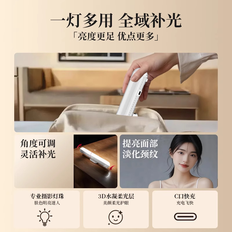 直播下巴补光灯主播专用专业打光摄影灯自拍照录视频直播间柔光灯美颜灯室内便携桌面灯棒led轮廓灯美食专用