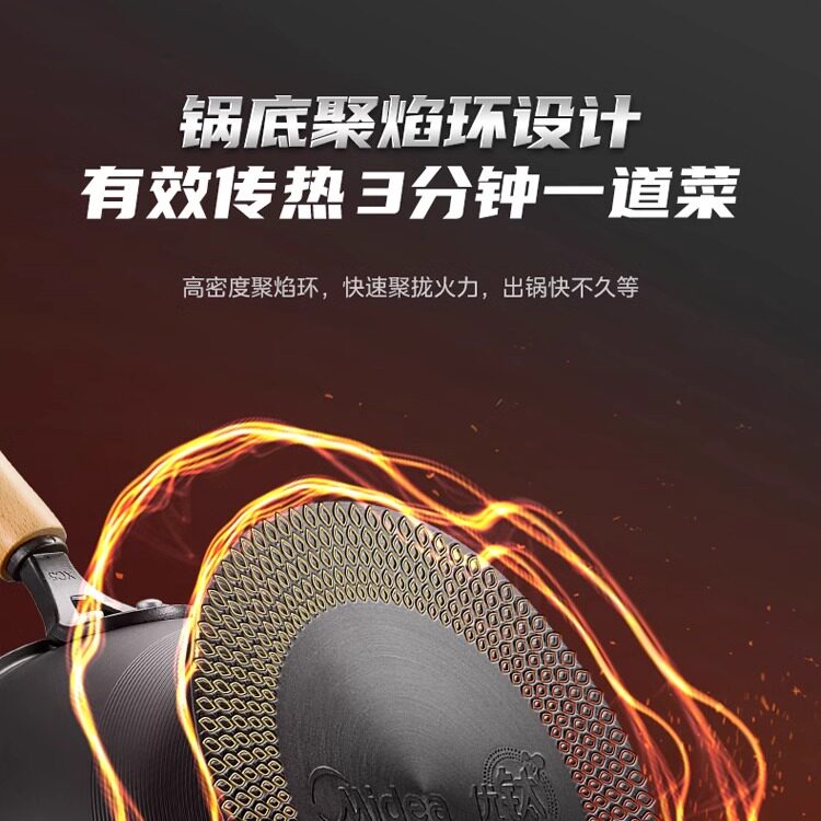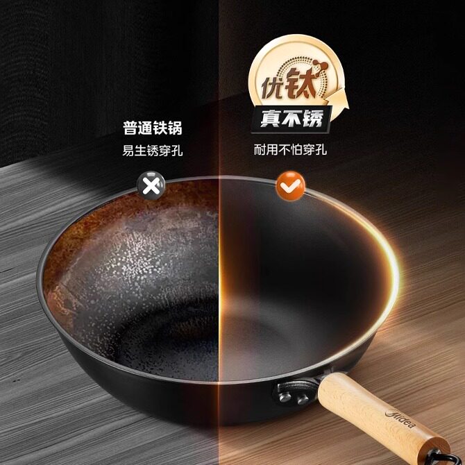 美的不粘锅免开锅炒锅家用炒锅钛合金电磁炉燃气灶炒菜锅平底锅