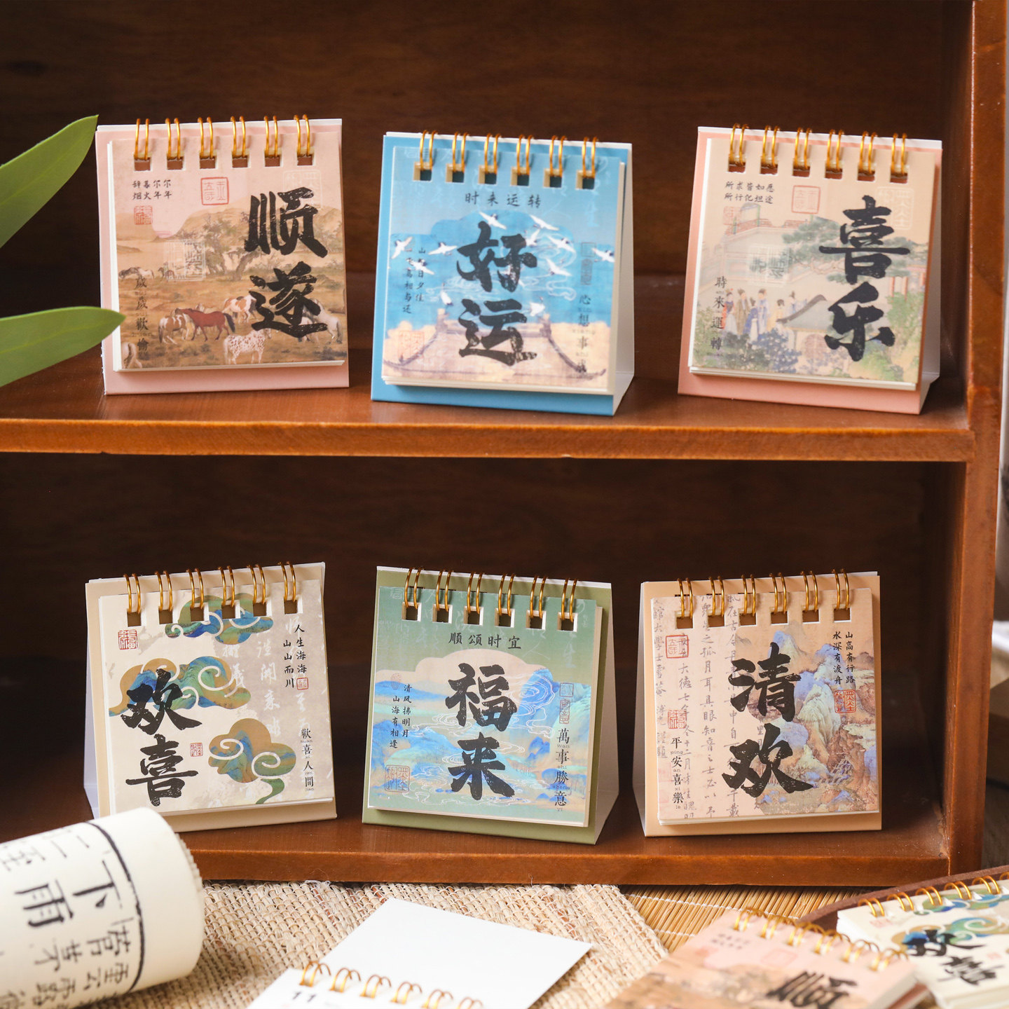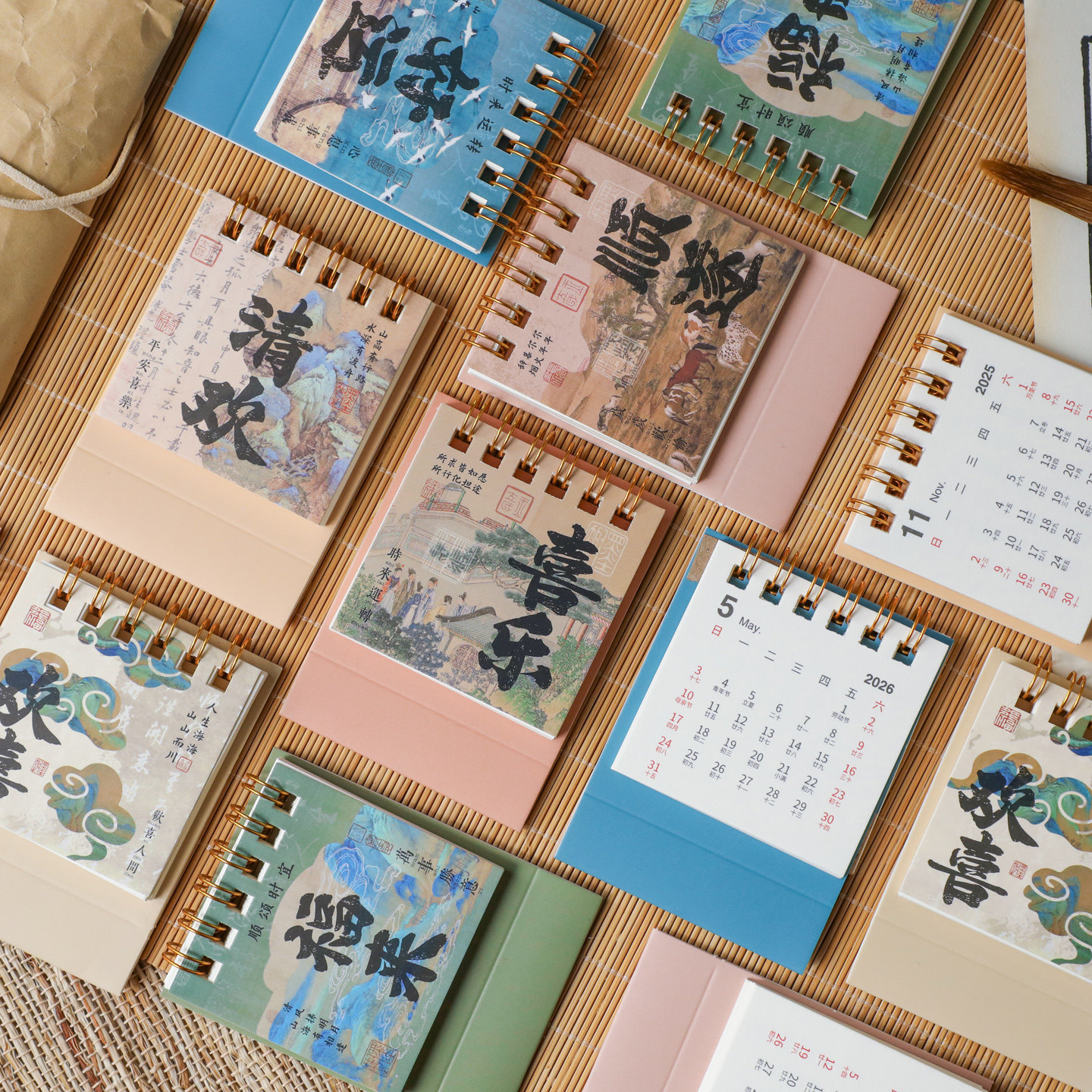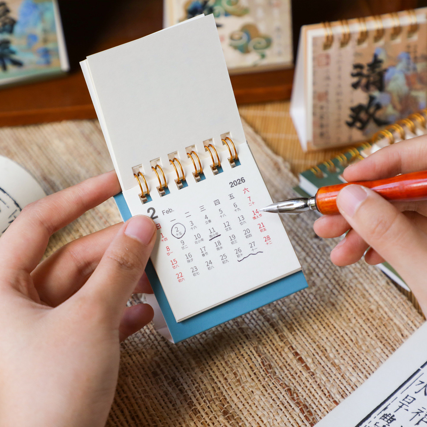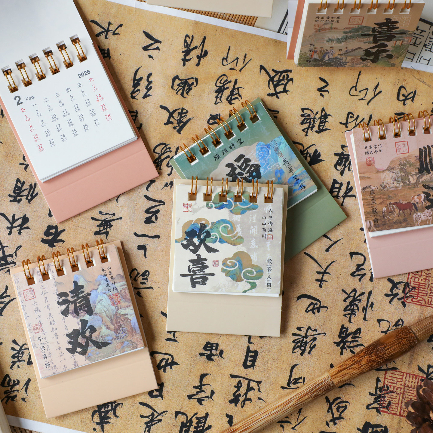2026年中国风迷你小台历 ins风文艺高颜值励志文字小日历学生日常便携打卡计划日历办公桌创意桌面小摆件