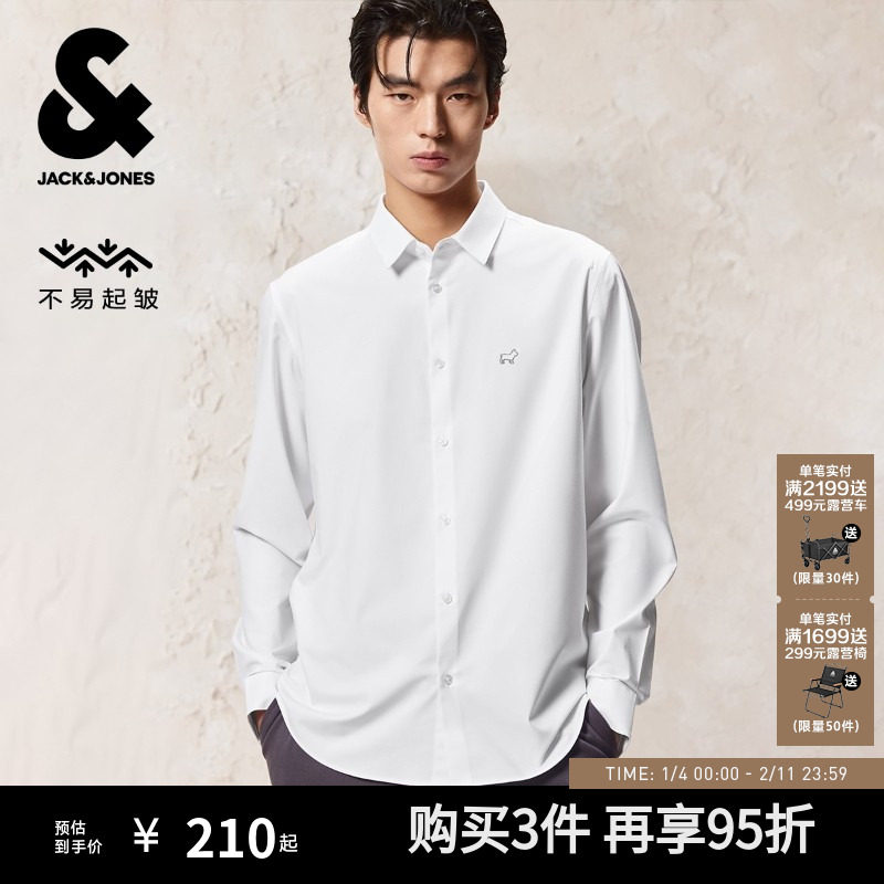 杰克琼斯男装秋季新款商务配色挺阔有型抗皱休闲标准正肩长袖衬衫