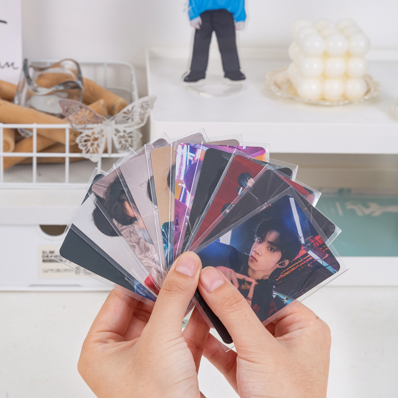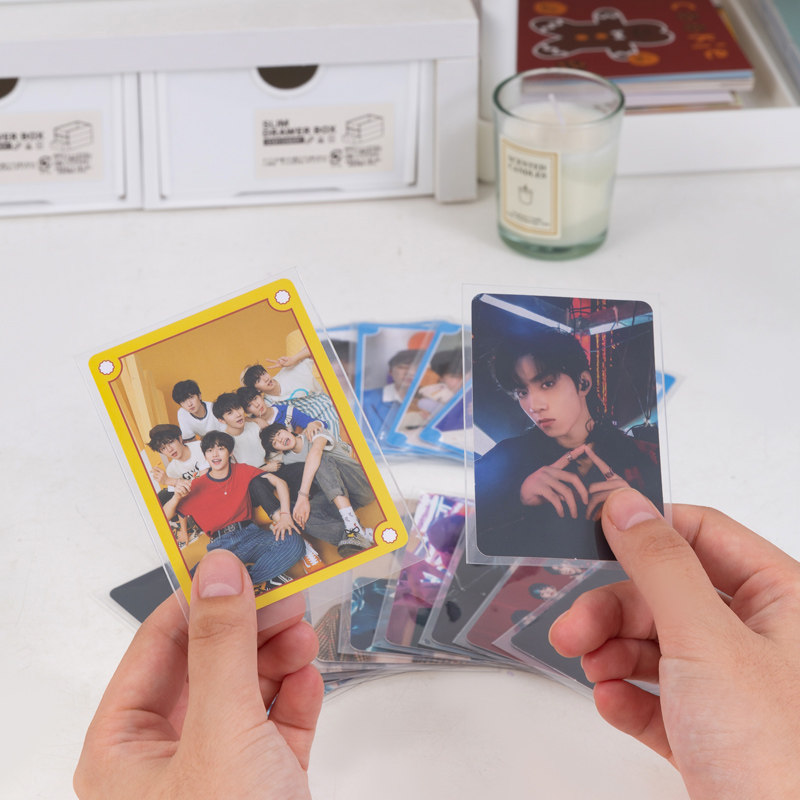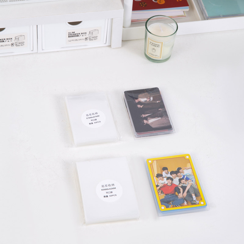 追星收纳小卡卡膜20丝封口平口高透保护套透明明信片生写六寸专辑保护套游戏王卡牌宝可梦奥特曼卡套爆米花