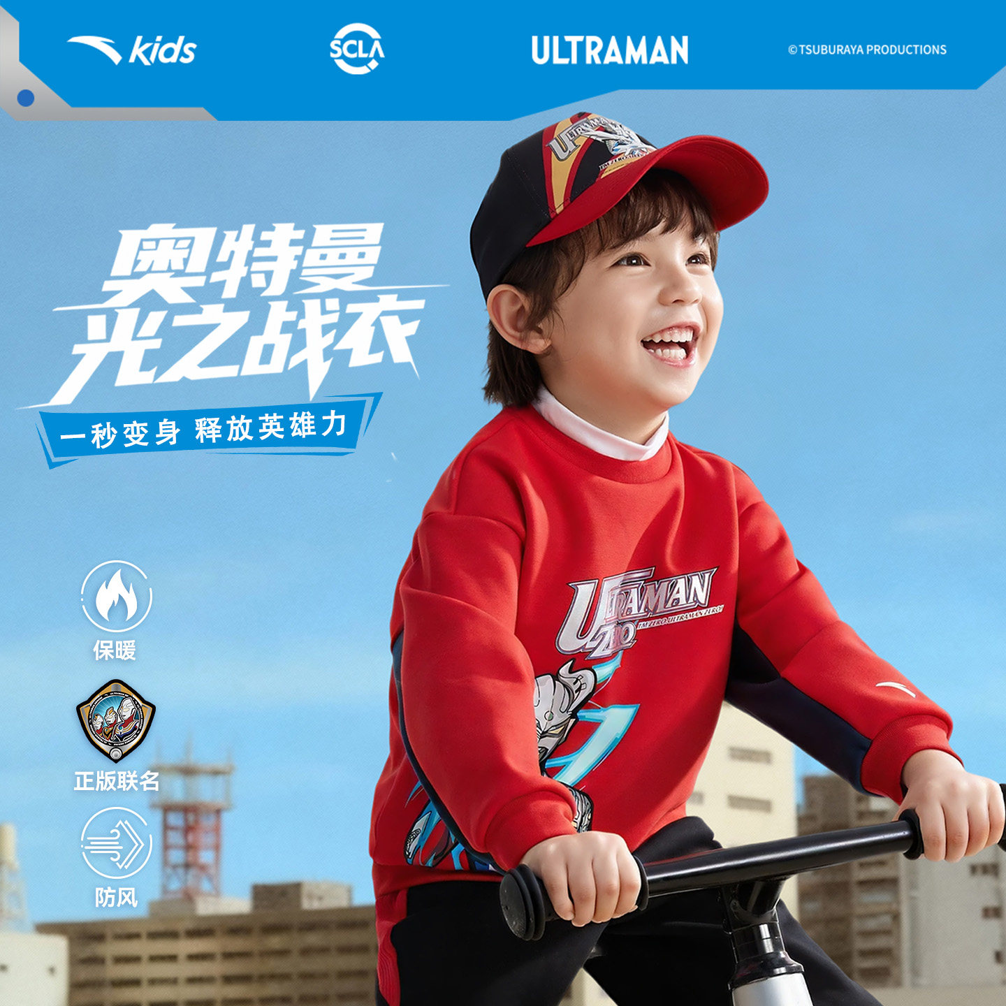 奥特曼安踏儿童卫衣男童宝宝套头衫2026年新款红色骑行加绒卫衣