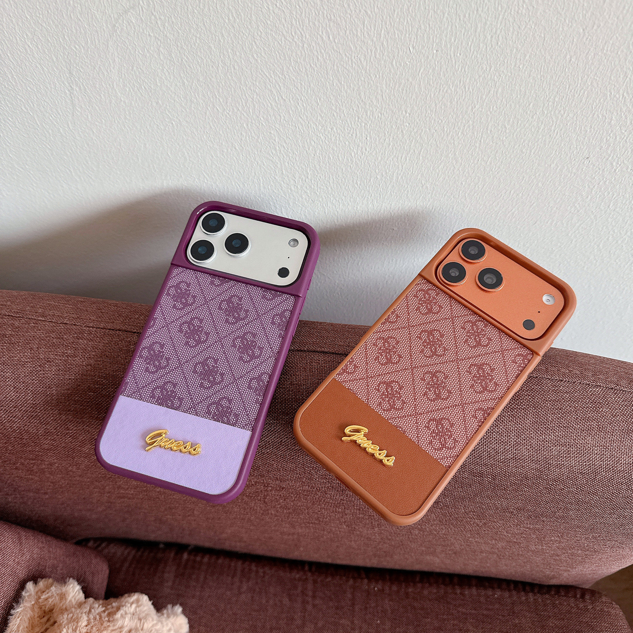 淳于亦简约大牌皮质英文字母适用苹果17promax手机壳15全包按键大视窗14/13创意拼接花纹字母软壳16防摔保护