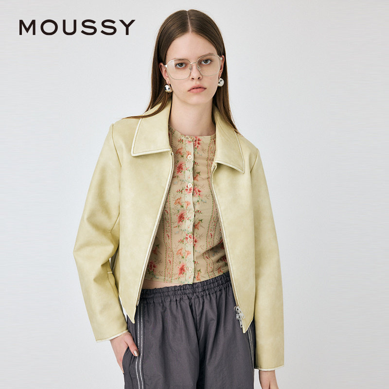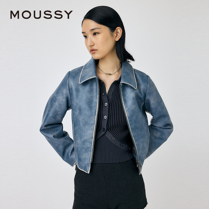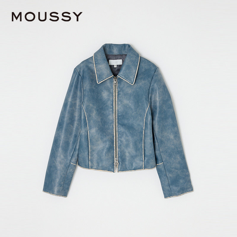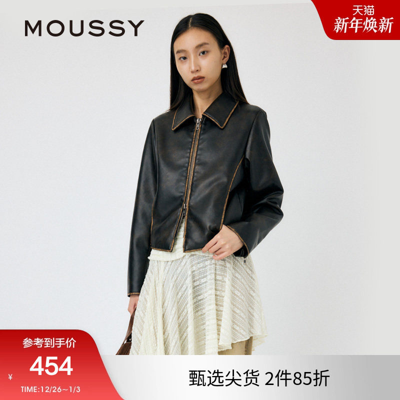 moussy 秋季新品美式做旧机车皮夹克设计感外套010HAH30-4231