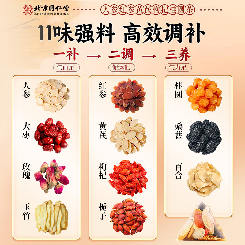 北京同仁堂红枣桂圆枸杞茶气血茶补气血女秋冬养生茶独立包装茶包