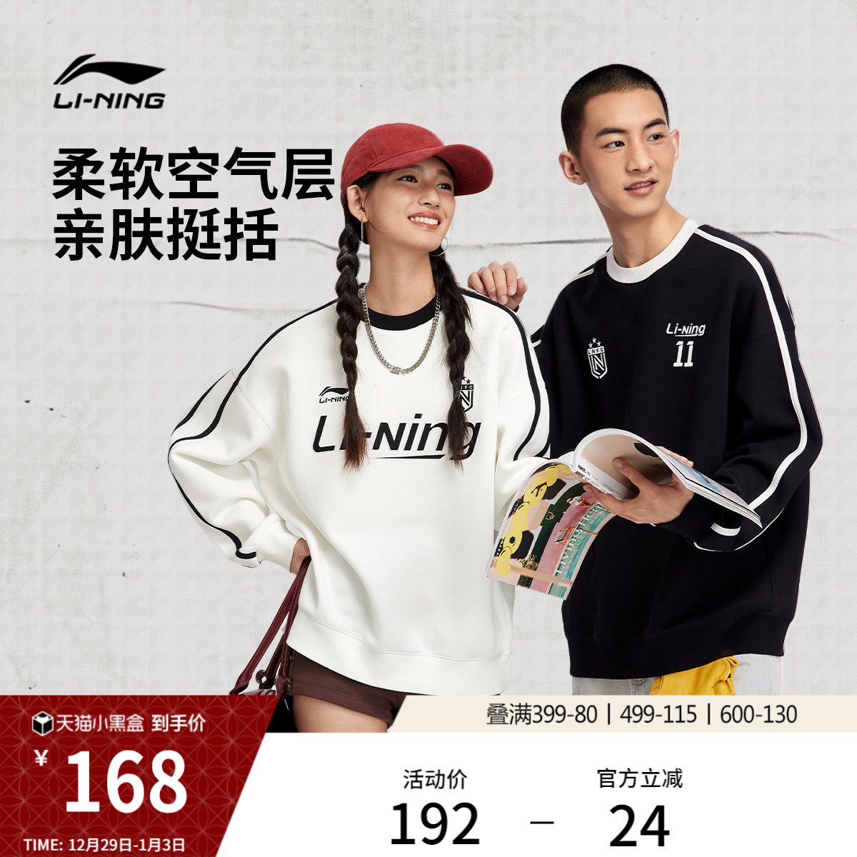 李宁美式卫衣女冬季新款情侣装长袖圆领加厚保暖上衣男宽松运动服