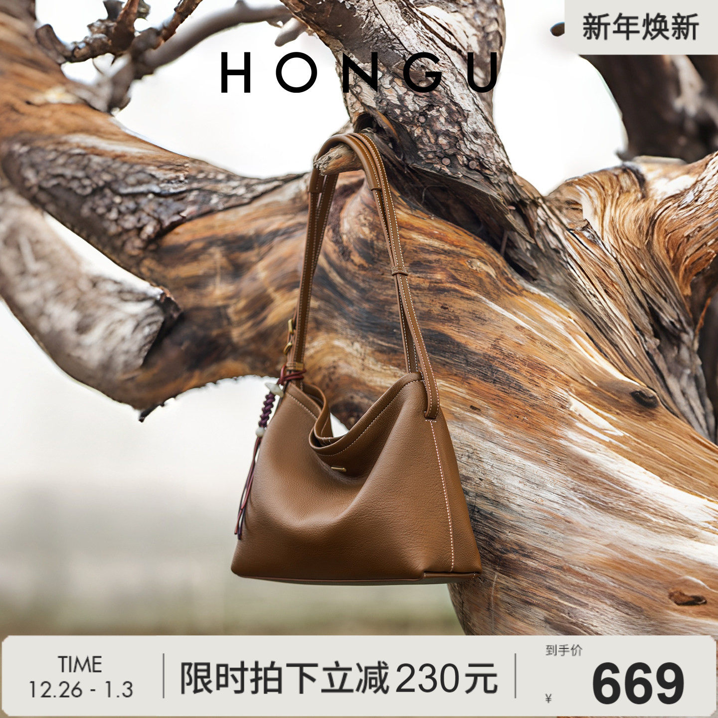 红谷包包2025新款真皮单肩腋下包时尚通勤高级感斜挎手提包女士包