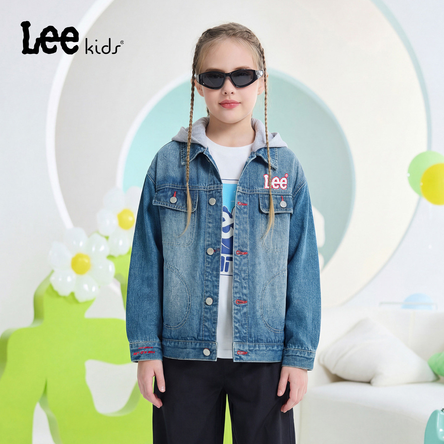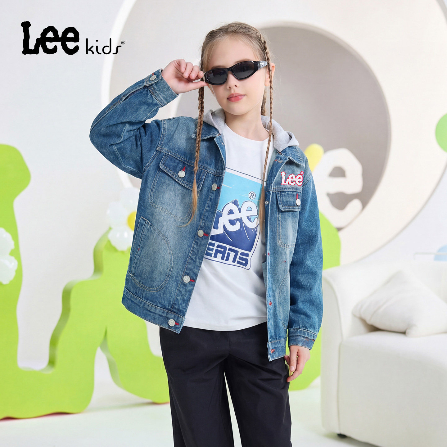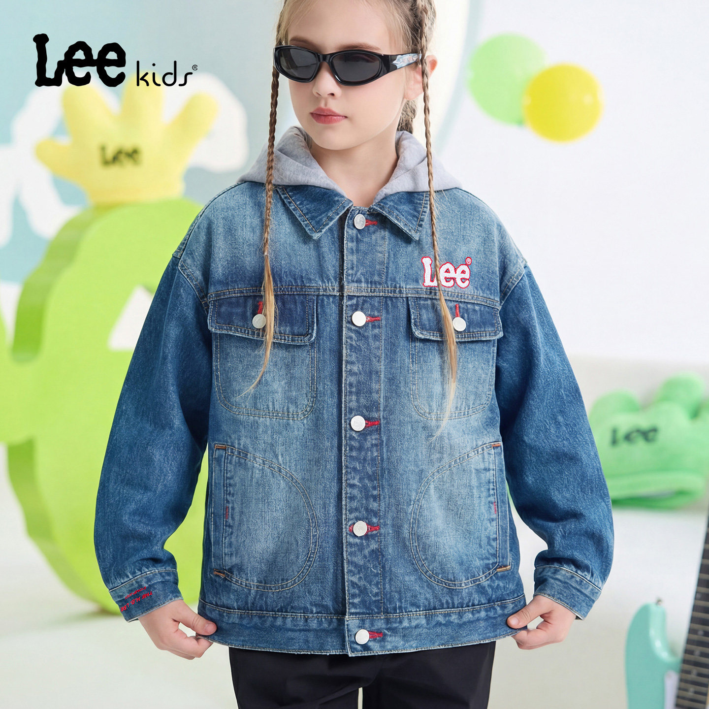 Lee kids儿童连帽牛仔外套男童女童水洗复古户外运动外套休闲百搭