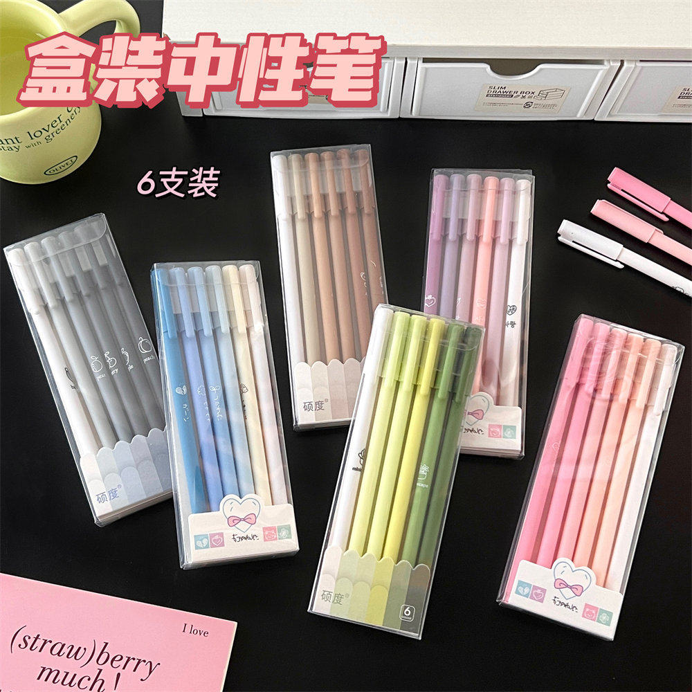 活动礼品色盒装笔六只装学生文具套装一盒支黑色考试中性笔碳素笔
