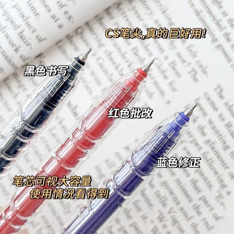 晨光按动中性笔黑色笔速干顺滑高颜值红蓝碳素笔考试办公用签字笔