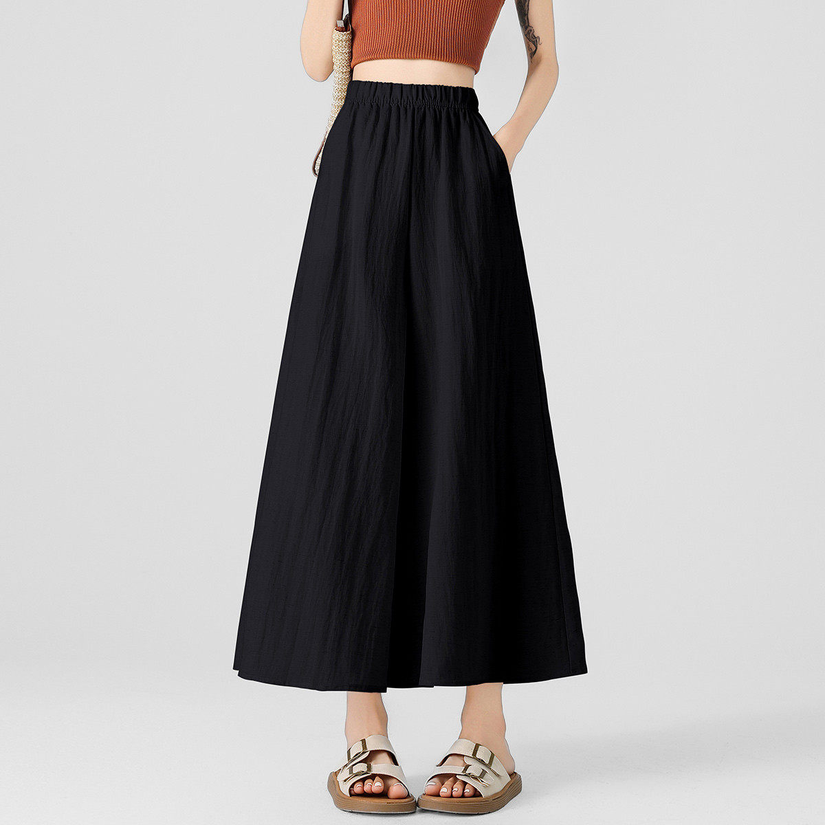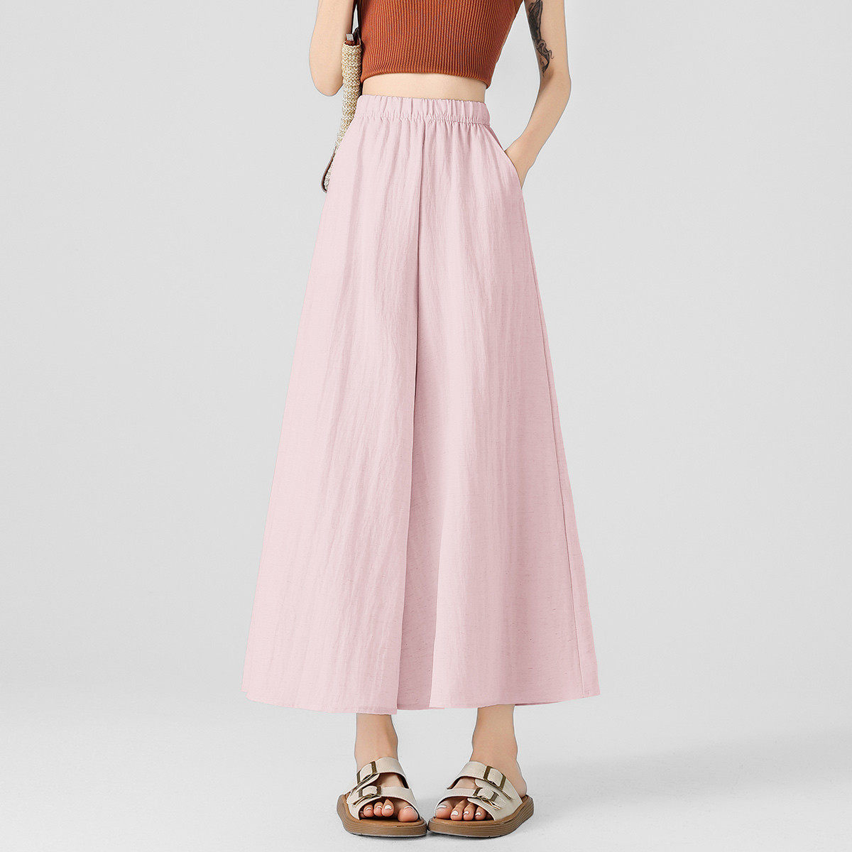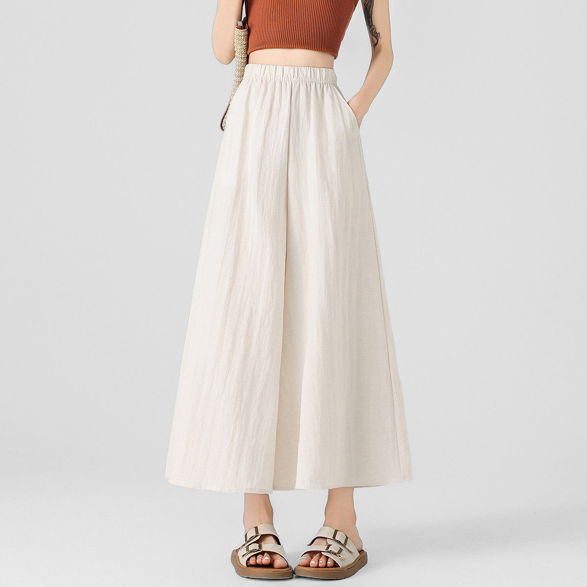 one more亚麻裙裤夏薄款2025新款宽松垂感显瘦半身长裙a字阔腿裙