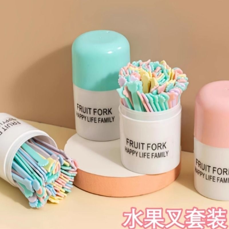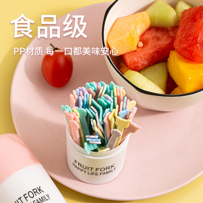 水果叉套装水果签一次性塑料两齿家用吃水果蛋糕甜品叉点心小叉子