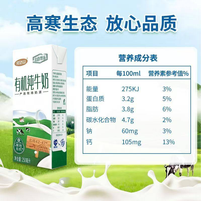 完达山有机纯牛奶250ml*16盒/箱有机奶全脂生牛乳早餐奶优质常温