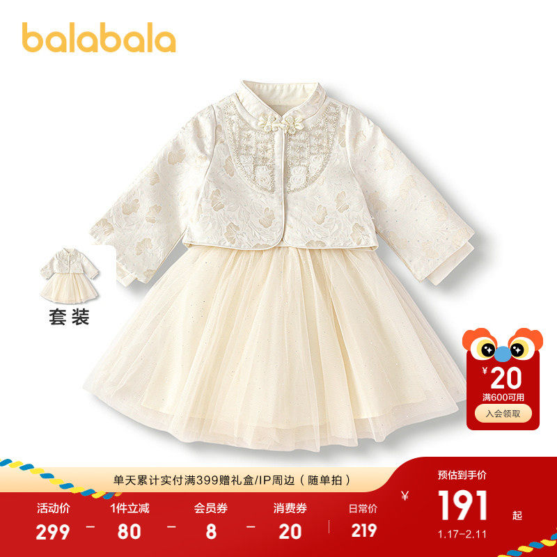 巴拉巴拉童装儿童女童新中式套装网纱蓬蓬裙两件套秋新款国风洋气