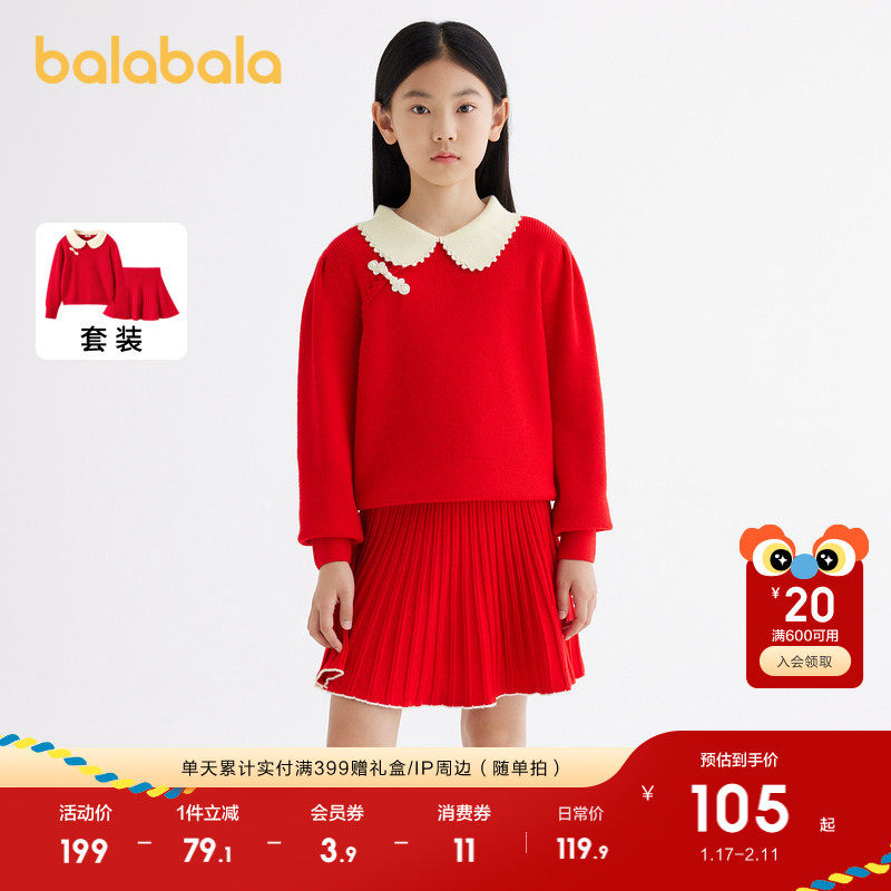 巴拉巴拉童装儿童长袖套装女童秋装2025新款两件套红色拜年服喜庆