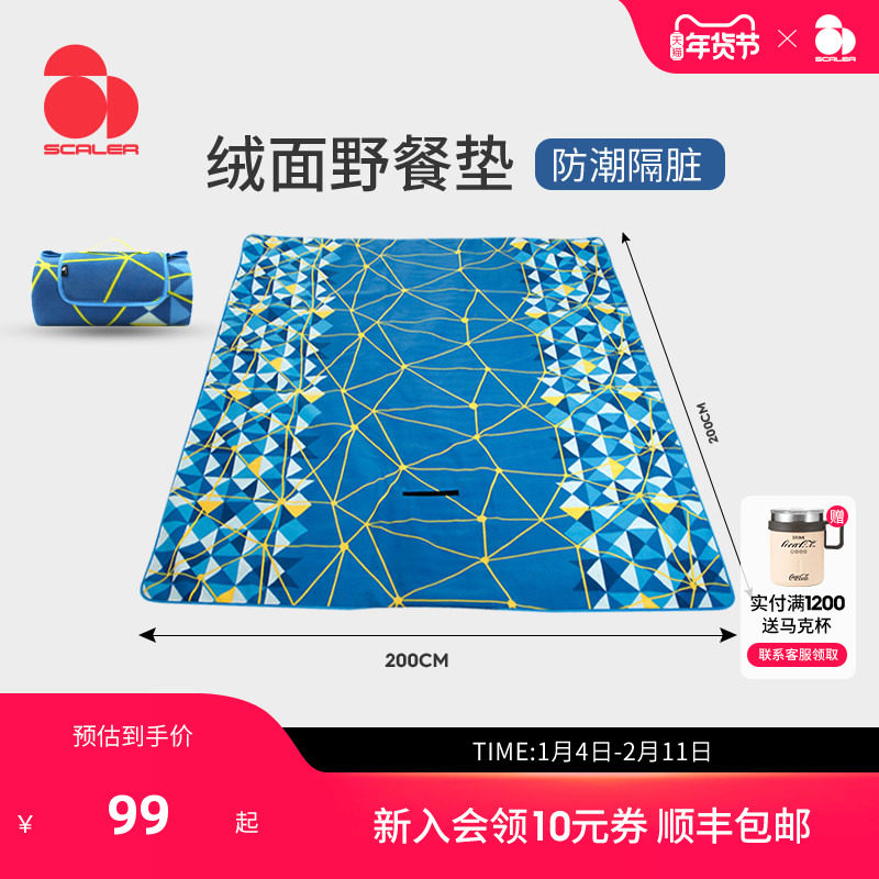SCALER思凯乐绒面野餐垫防潮加厚春郊游便携公园草地帐篷露营地垫
