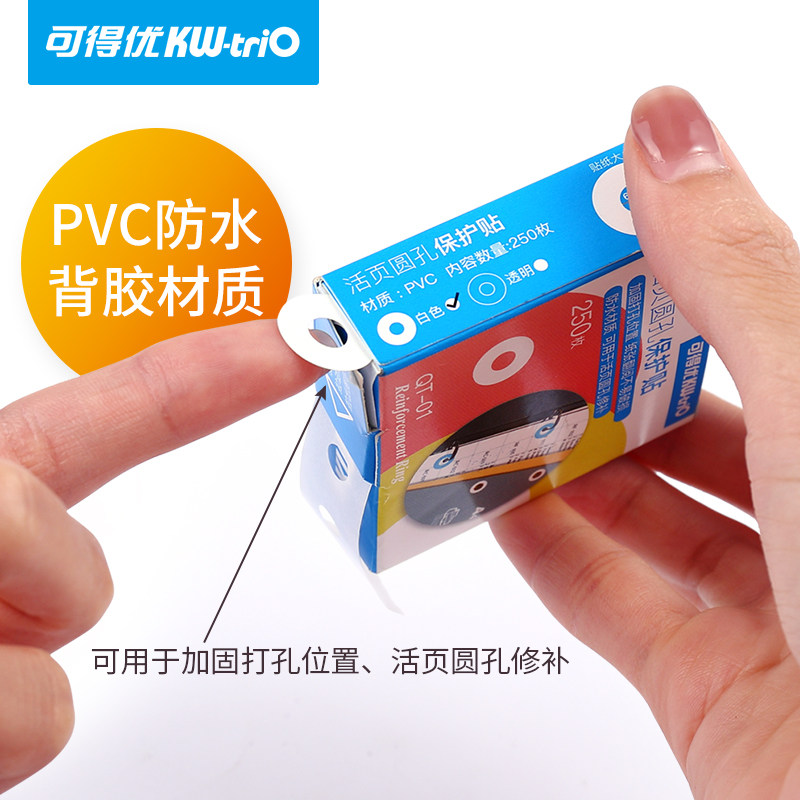 可得优活页纸圆孔保护贴手帐打孔圆点贴修复护孔贴打孔修补贴纸圆形封口贴加固透明活页鸡眼圈手账白色封口贴