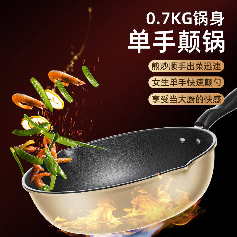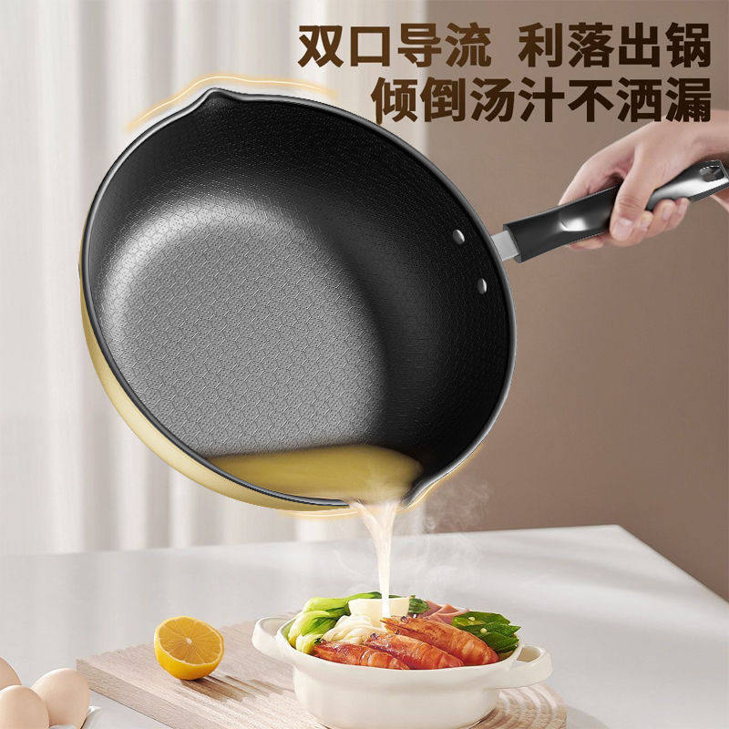 蜂窝炒锅双导流不粘锅家用不沾炒菜锅平底锅电磁炉煤气燃气灶通用