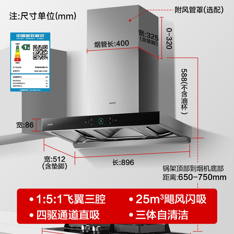 三腔四驱吸烟 油烟无逃逸 24立方 自动清洗