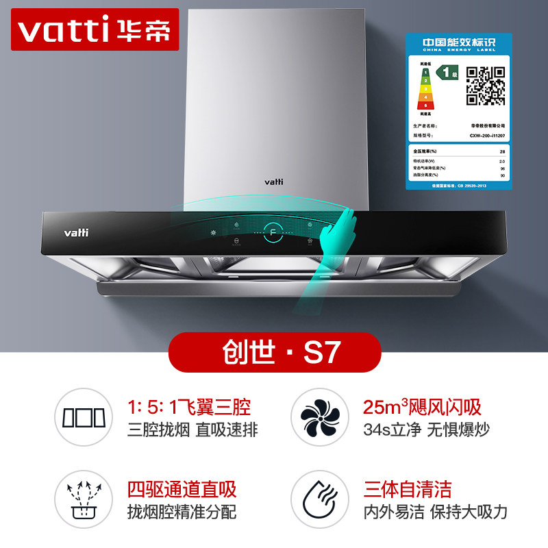 华帝抽油烟机S7/255大吸力自动洗家用厨房油烟机燃气灶套餐旗舰店