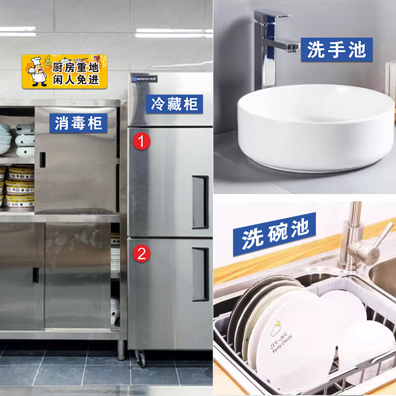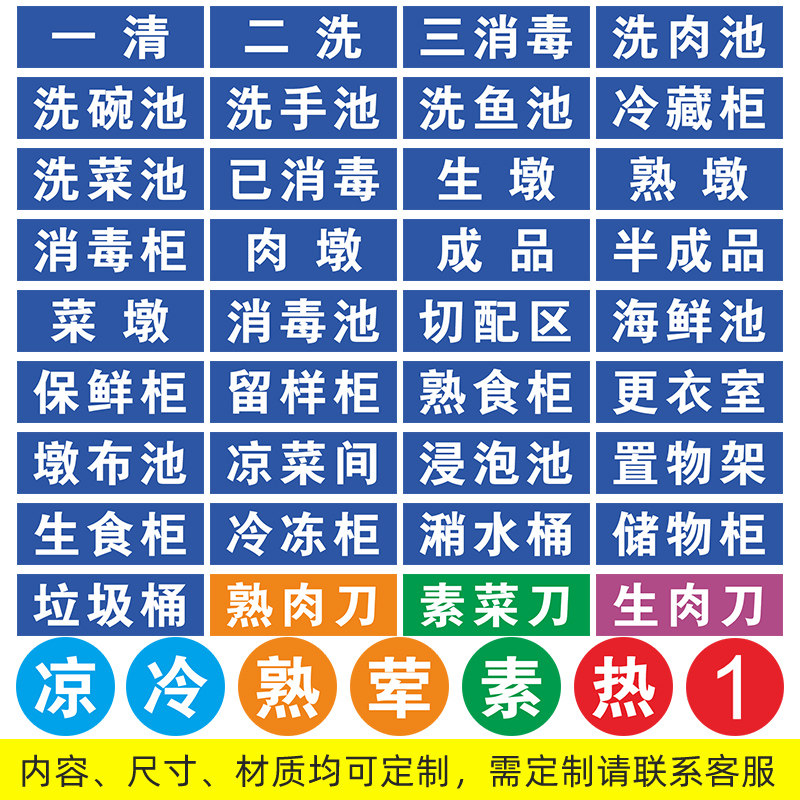 厨房各类标识贴学校酒店餐饮后厨防水防油提示牌标示牌贴纸一清二洗三消毒PVC胶片贴各类菜品器具标识贴