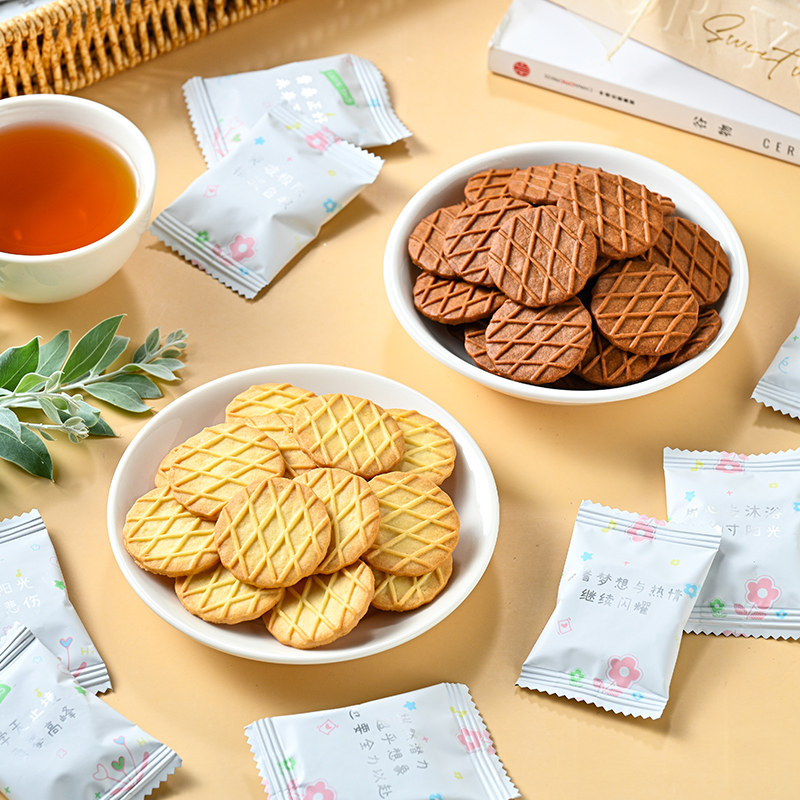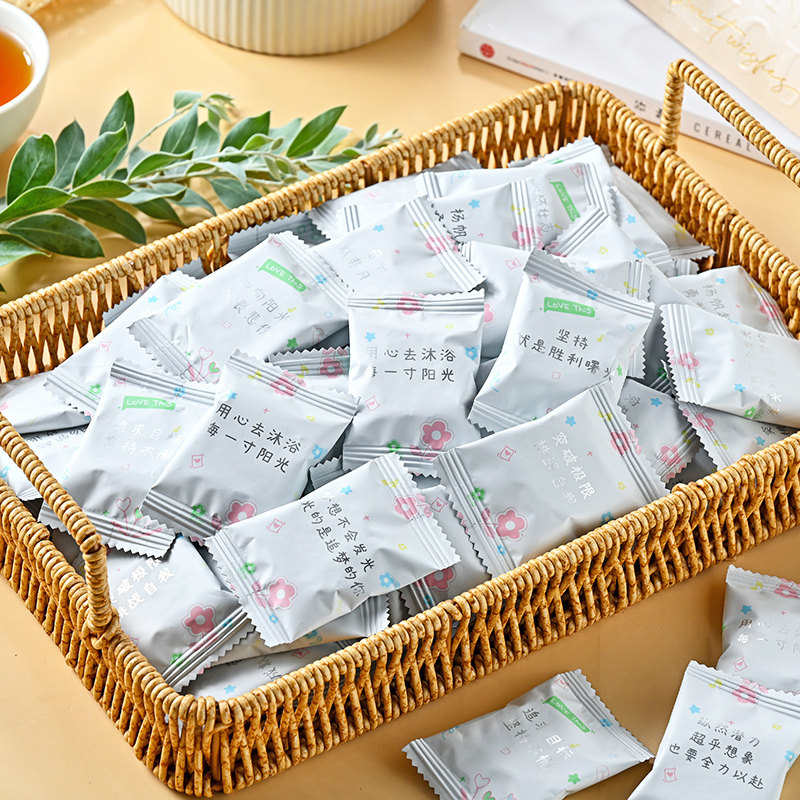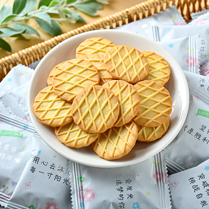 励志语录小饼干生椰拿铁味华夫饼干芝士味圆饼小零食圣诞节高颜值