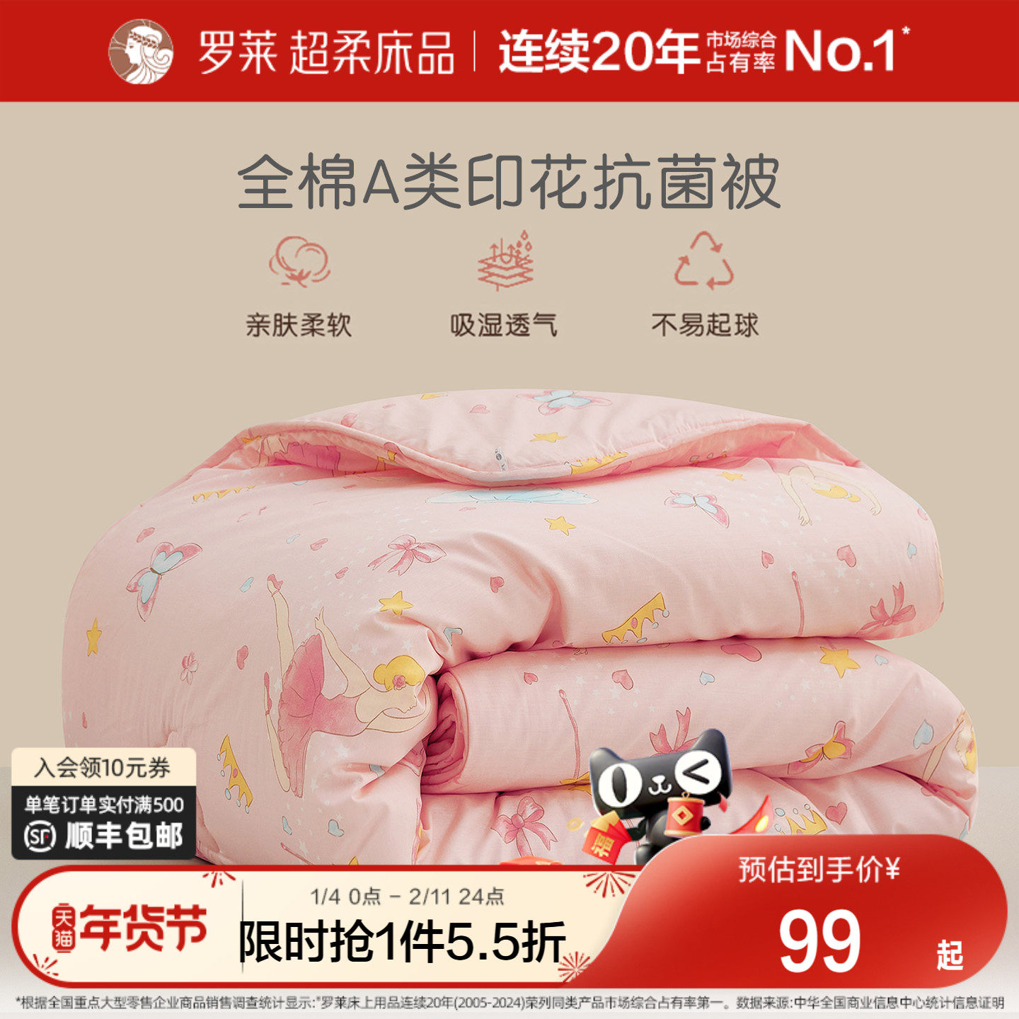 罗莱家纺儿童全棉纤维被学生宿舍四季被冬被二合一被A类被子被芯
