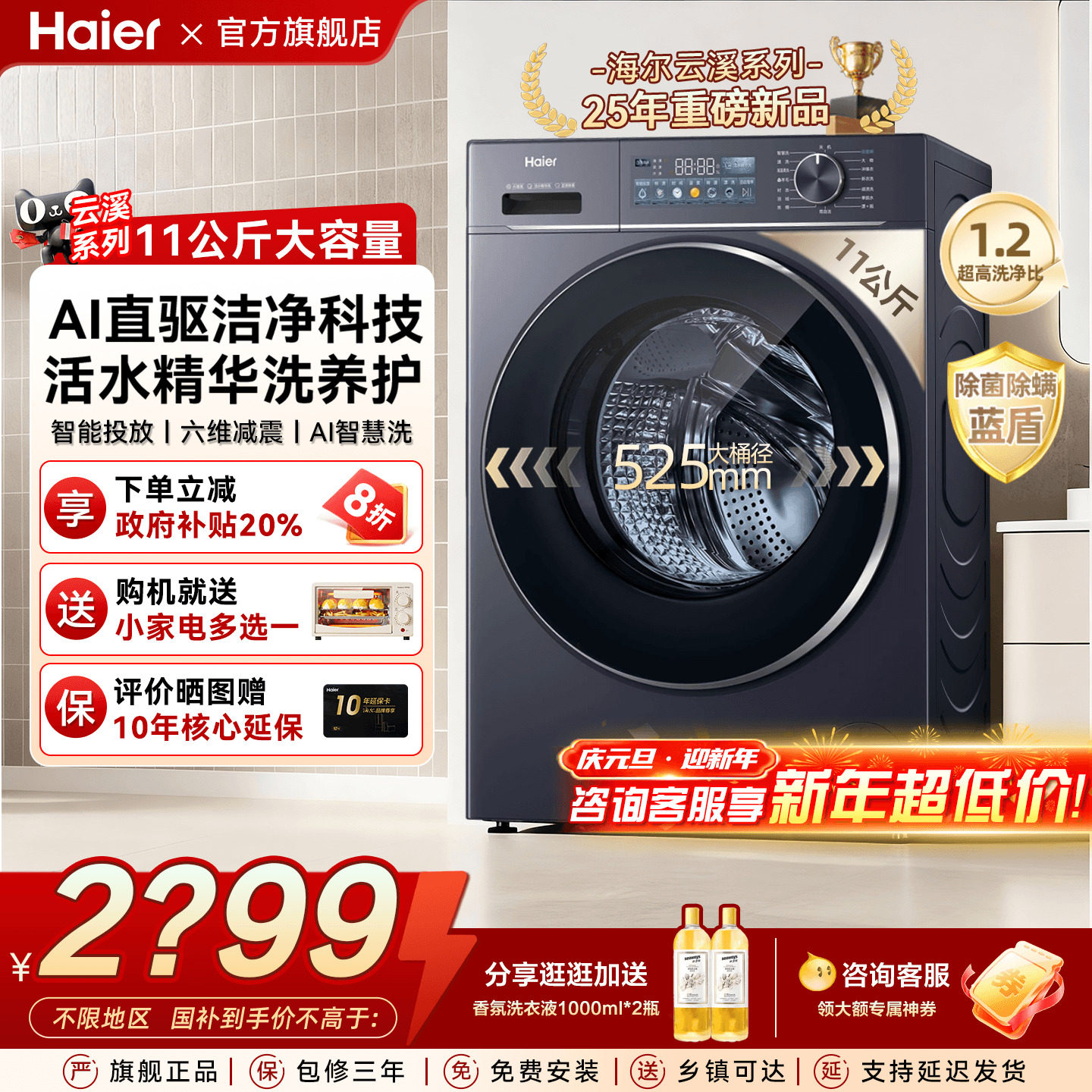 云溪4.0∣立减20%海尔78E滚筒11KG直驱家用大容量全自动洗衣机77E