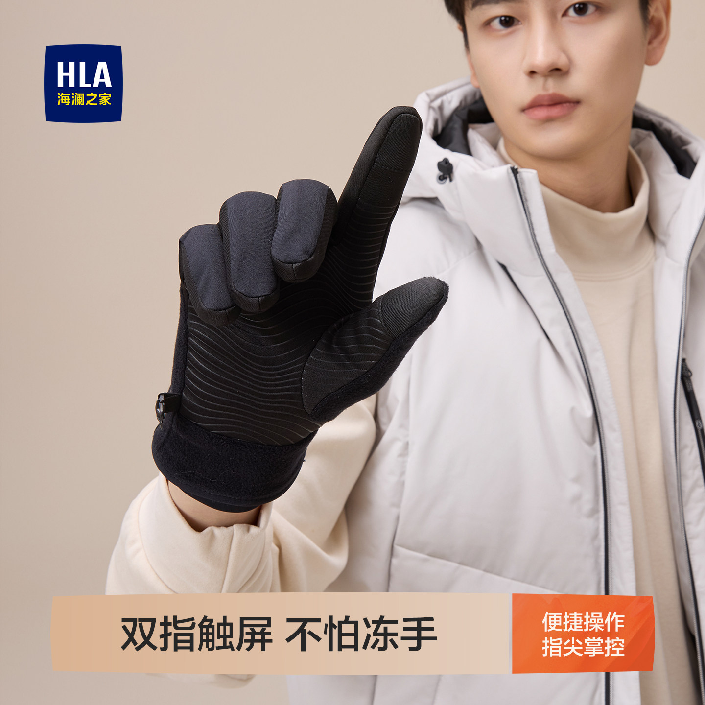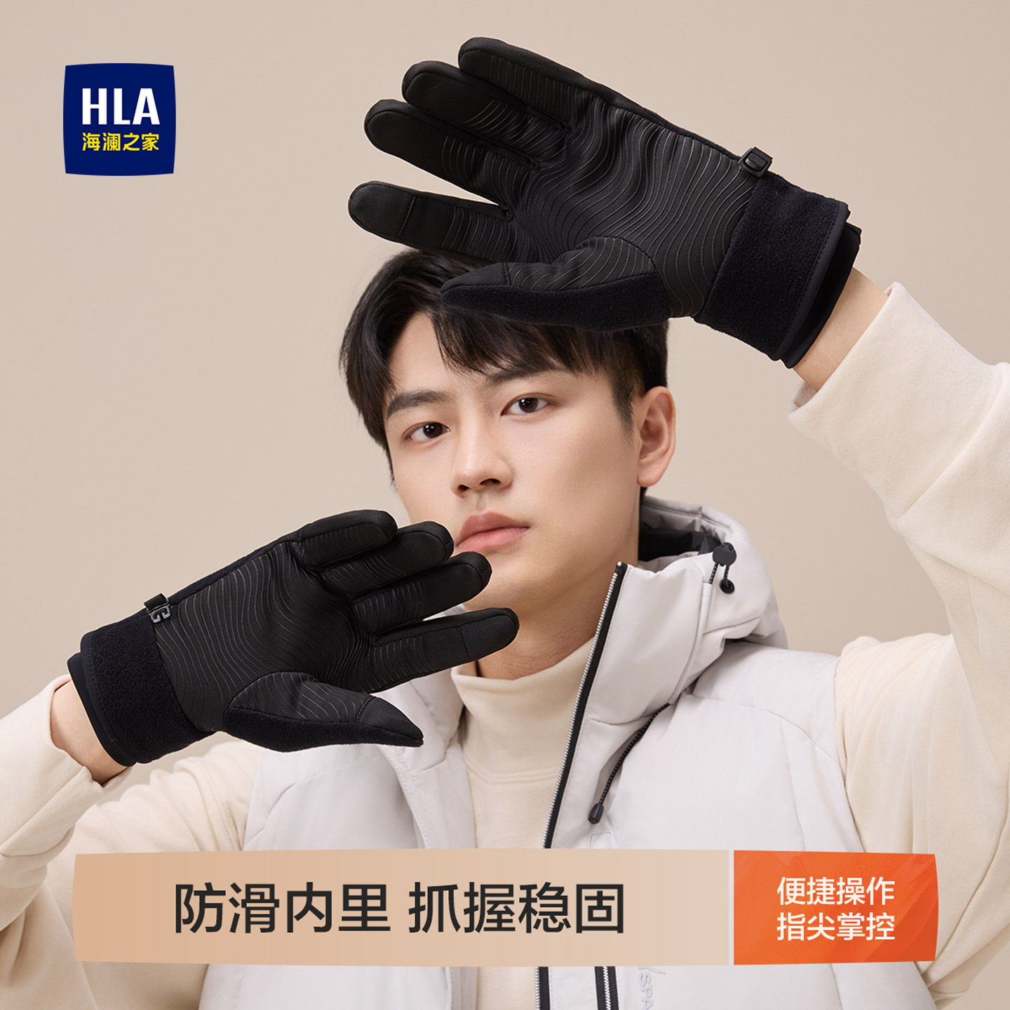 海澜之家手套男士2025新款秋冬季保暖加绒加厚骑行防滑摩托车触屏