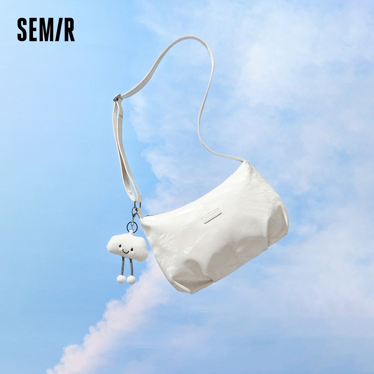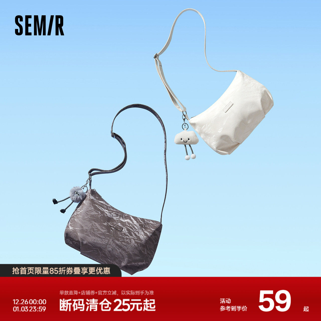 森马包包斜挎包2024新款仿丝绒大容量单肩包设计感褶皱饺子包流行