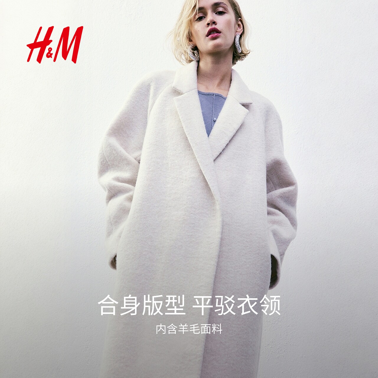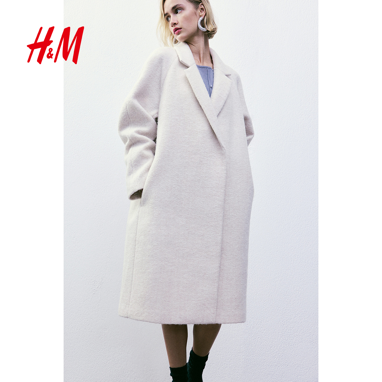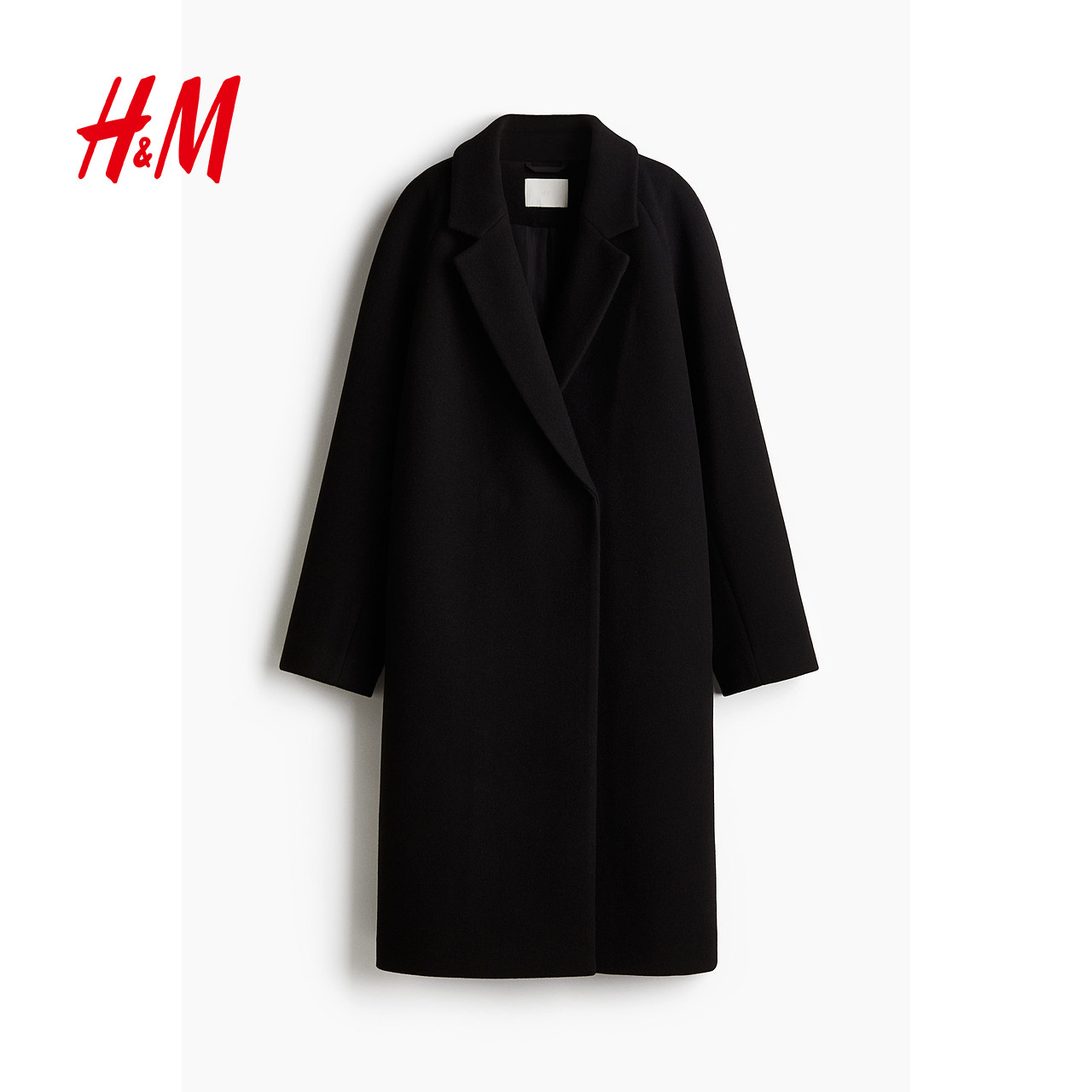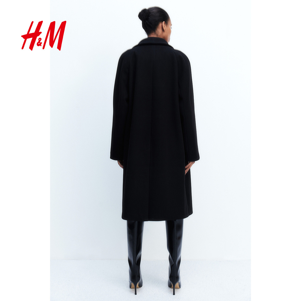 HM女装毛呢外套冬季时尚气质翻领舒适双排扣中长款大衣1159193