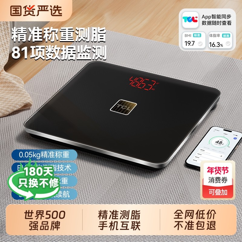 TCL体重秤体脂秤家用精准充电体重称智能电子称减肥专用的秤称重