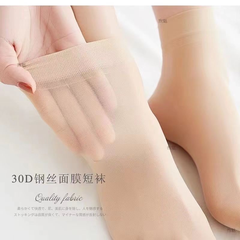钢丝袜女短袜隐形薄款中筒袜春夏款透明水晶袜防勾丝天鹅绒短筒袜