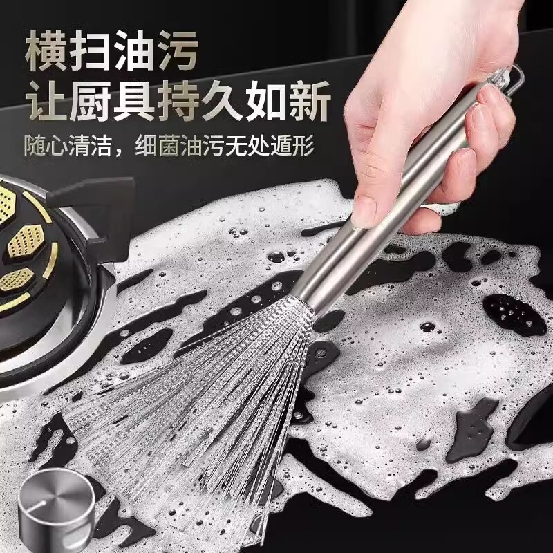 刷锅神器洗锅碗刷子厨房专用家用不锈钢长柄清洁钢丝不伤锅可挂式