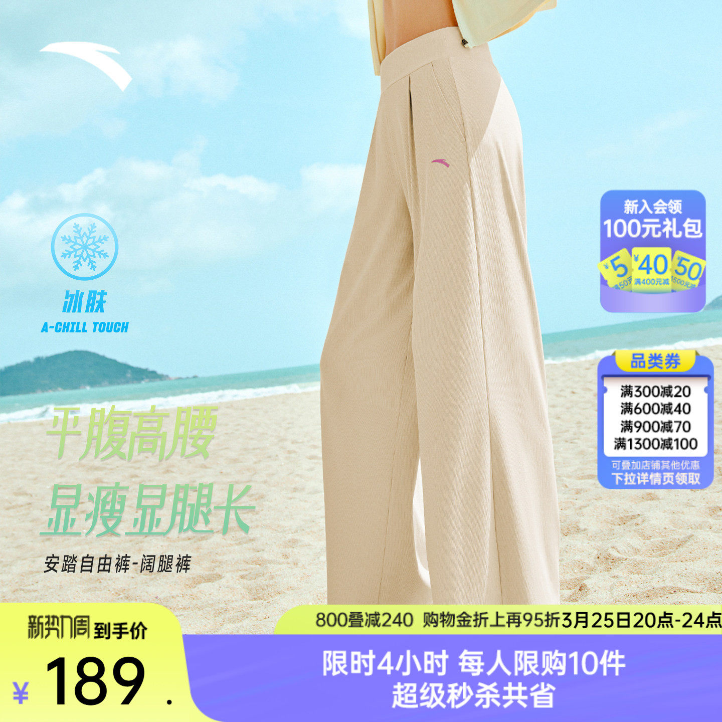 安踏自由裤丨山本裤防晒阔腿裤女士夏季薄款垂感慵懒运动休闲长裤