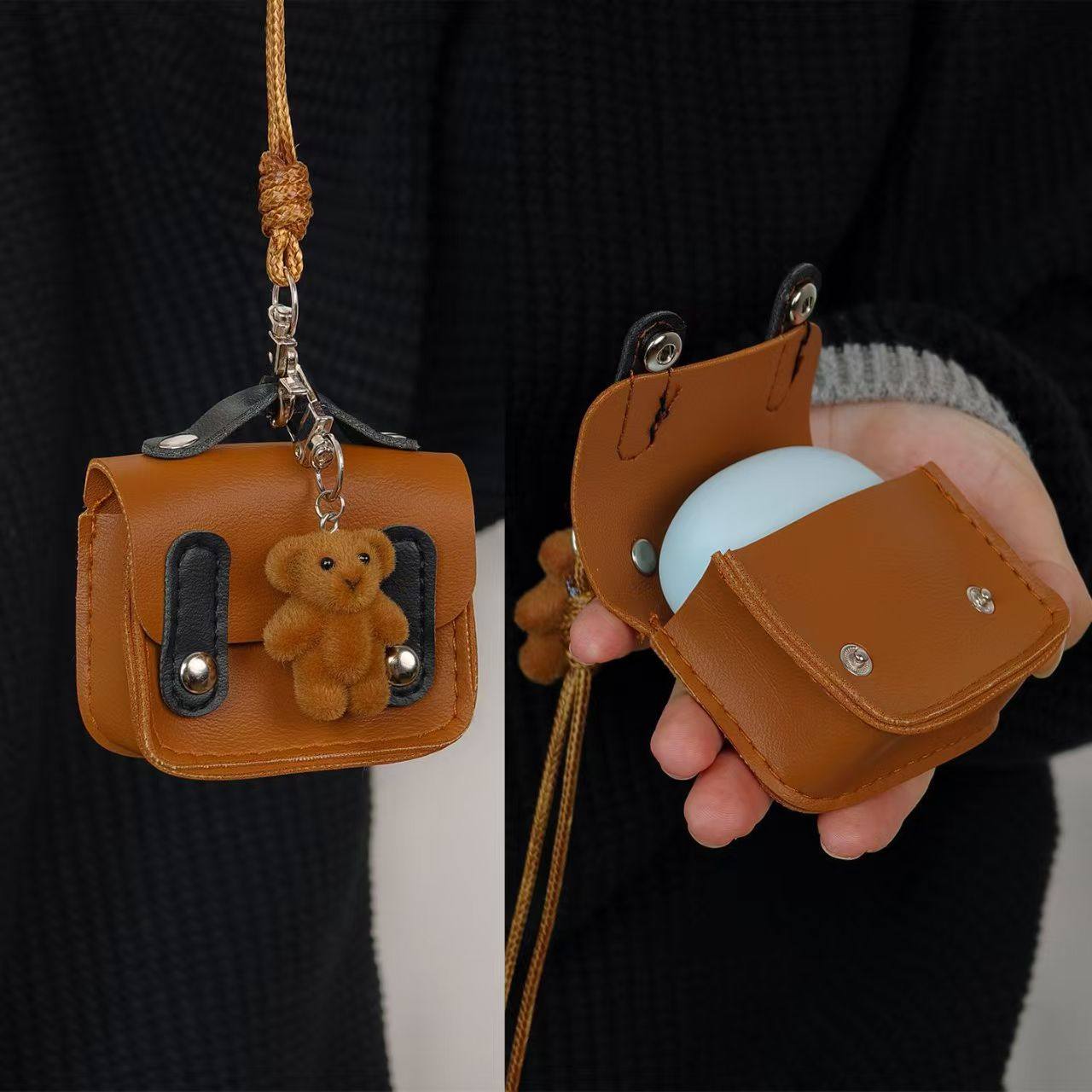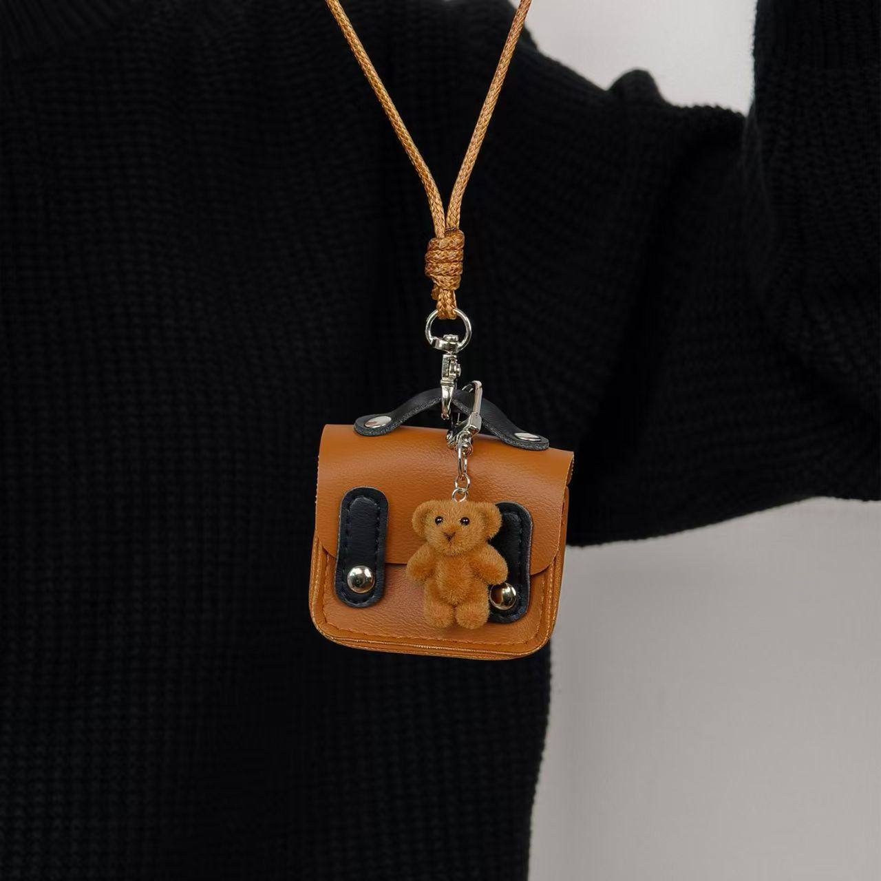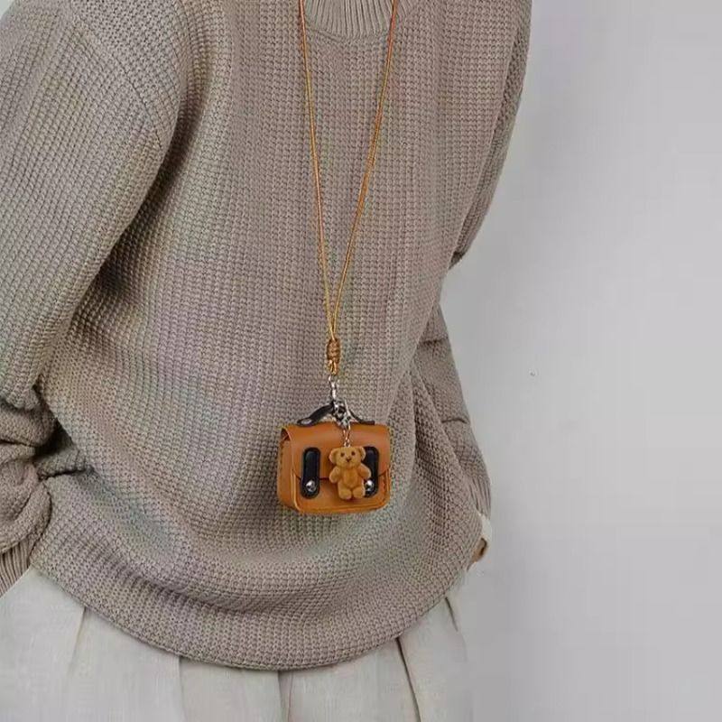 耳机包日韩风美拉德皮质小熊包包挂件吊坠项链长款毛衣链编织绳