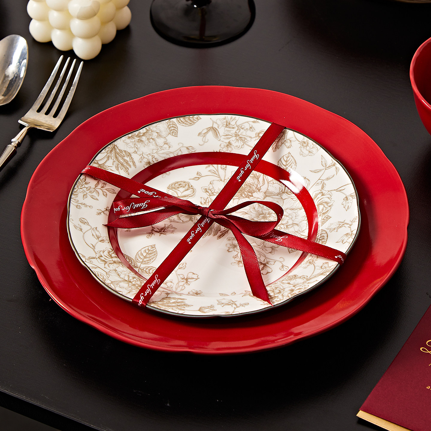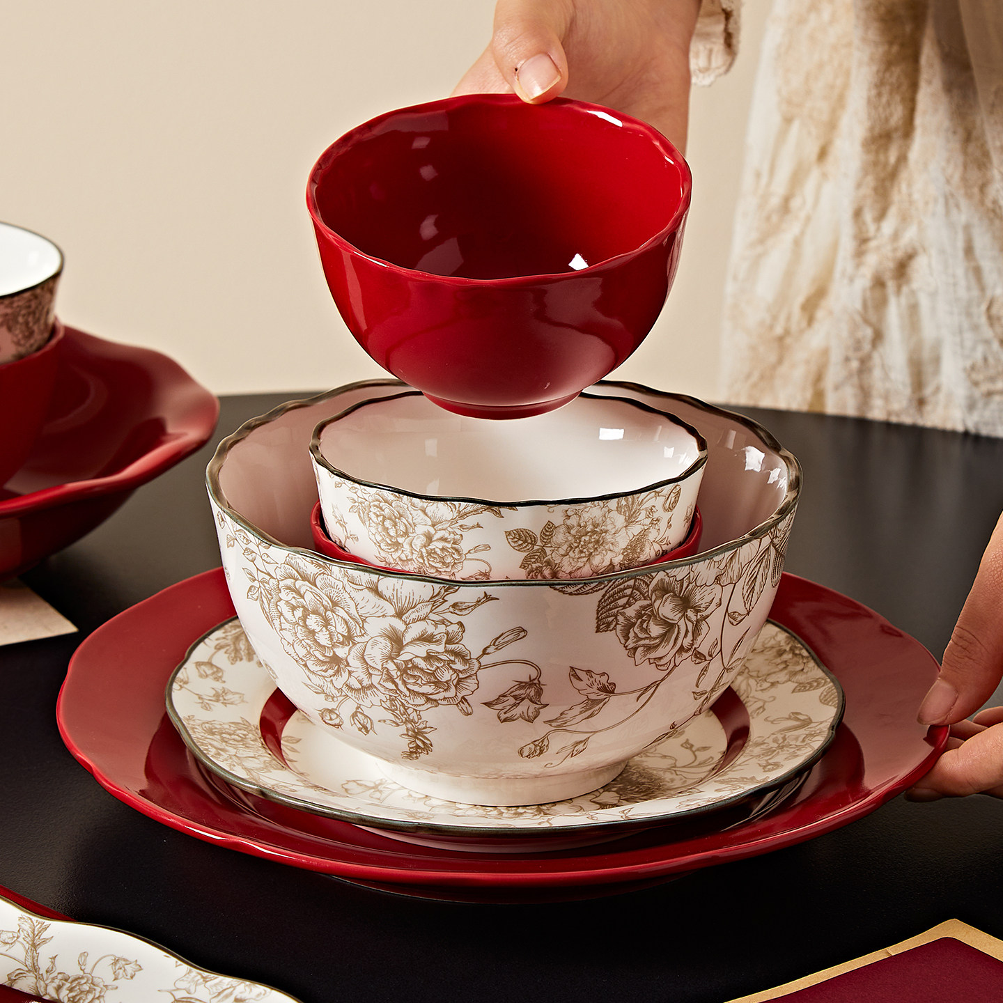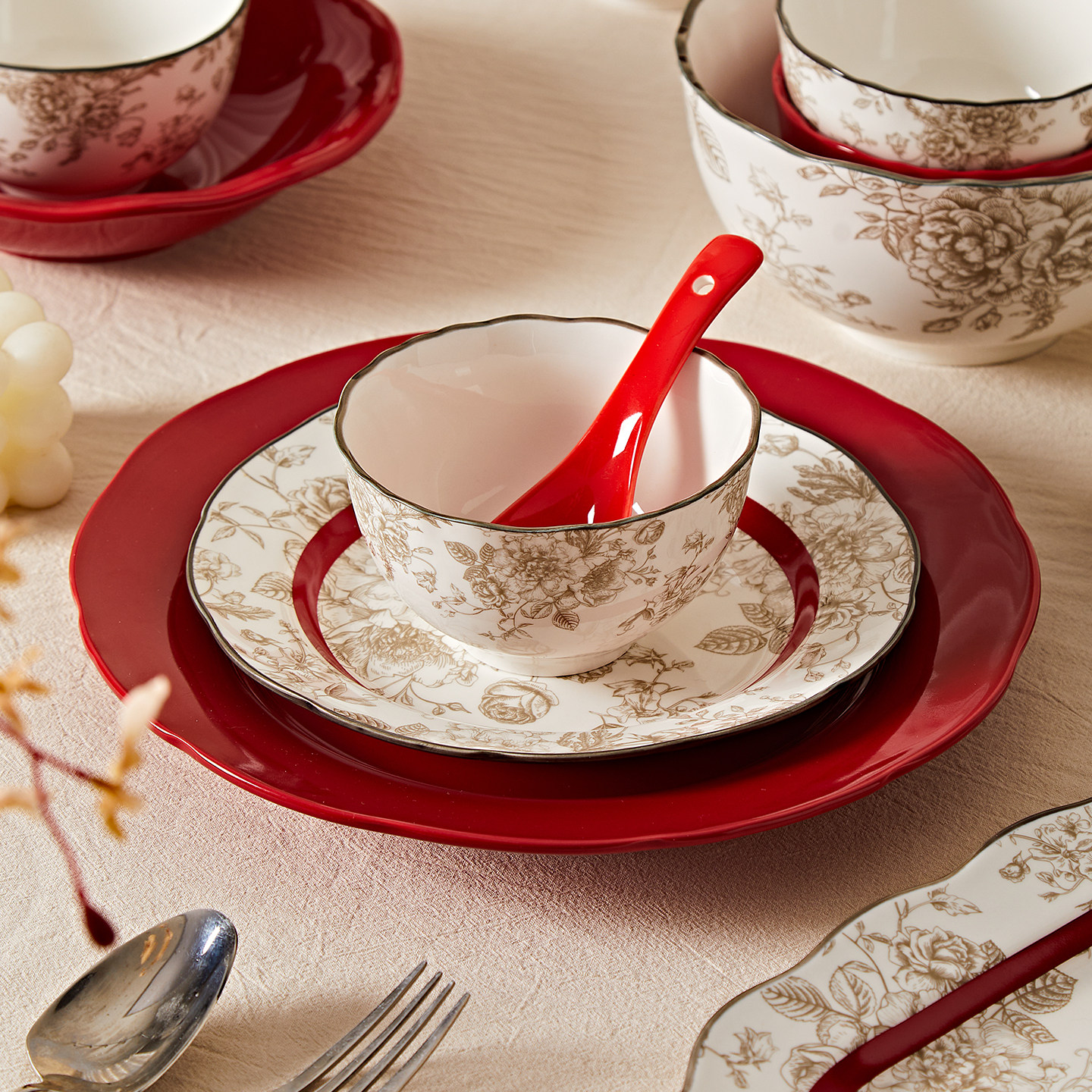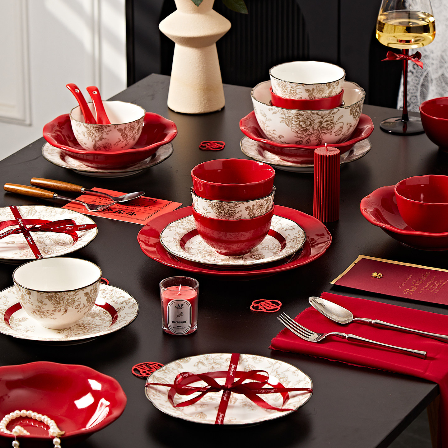 高档碗碟餐具陶瓷新婚礼物送新娘红色碗盘筷套装乔迁新居结婚礼盒