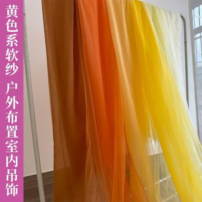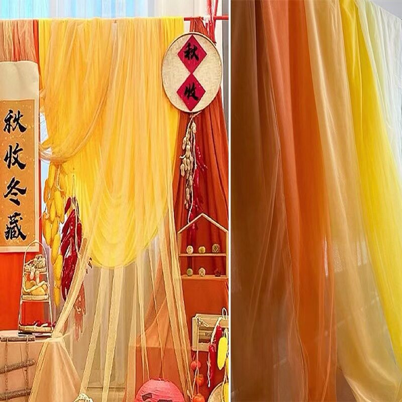 秋冬季黄色丰收系氛围感ins雾纱幼儿园婚节庆派对拍照墙网纱面料