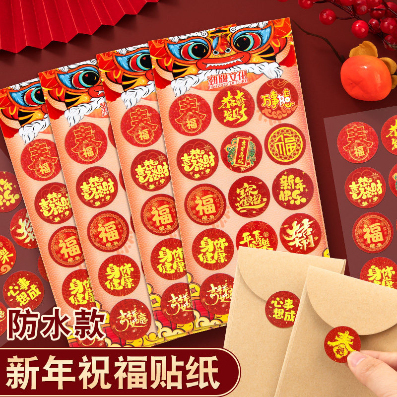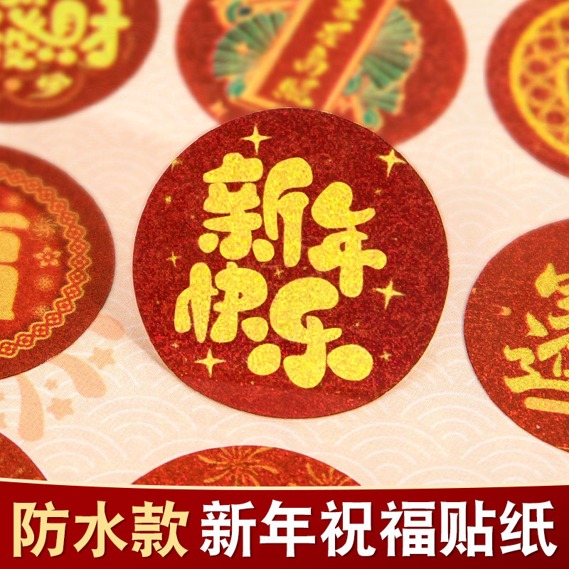 烫金高级感镭射新年祝福圆形贴纸福字小贴画